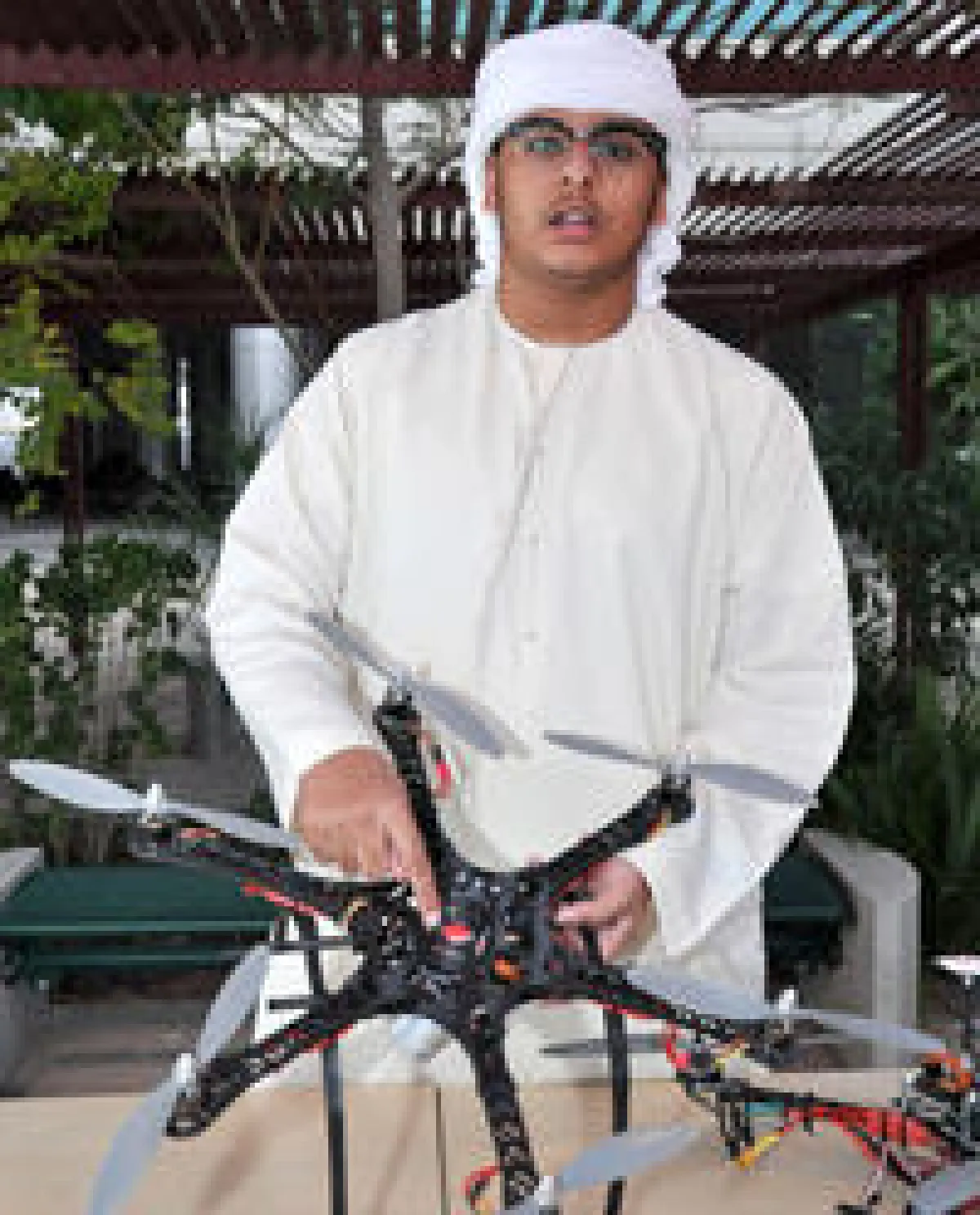 نجح الطالب الإماراتي في جامعة خليفة للعلوم والتكنولوجيا، فهد محمد الشيباني، في ابتكار طائرة متعددة الأغراض، تستطيع التحليق على ارتفاعات تصل إلى أكثر من 500 متر، وحمل كاميرات تصوير، أو غاز إطفاء، أو أي شيء آخر، والتحكم فيها وتوجيهها عن بعد، إضافة إلى امتلاكها خاصّيتَي الاستكشاف والتتبع للون، أو شكل ما، وفقاً لبرمجتها.