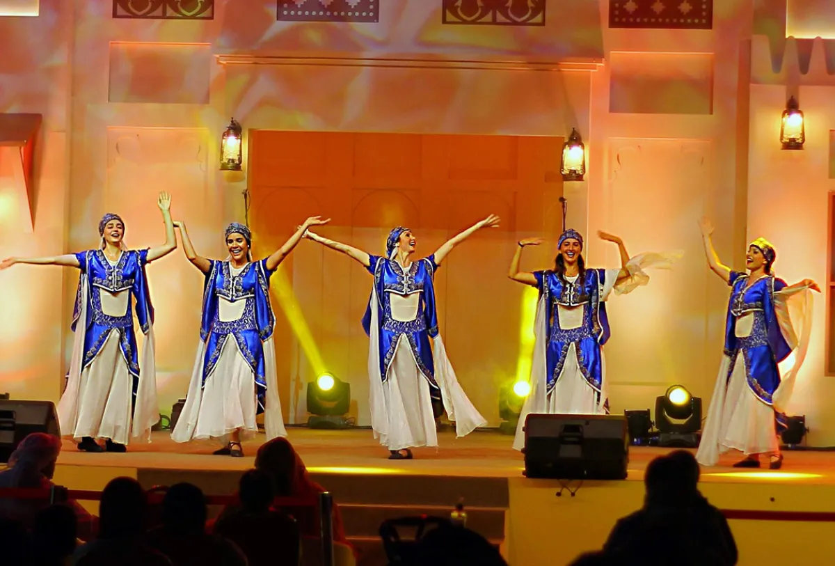 من على "مسرح الأيام" الذي يتوسط المنطقة التراثية في قلب الشارقة، قدمت فرقة المسرح السوري حكاية من داخل الحارة الشامية القديمة لجمهور فعاليات الدورة الـ 18 من "أيام الشارقة التراثية" التي تتواصل حتى 10 أبريل الجاري، حيث جسدت في مسرحية غنائية تراثية قصة حب بين شاب وفتاة تحول بينهم العادات والتقاليد وتمنعهم من الزواج، إلا أن حبهم ينتصر بعد سجال وجدال طويل يعلو فيه صوت العقيد وكبار الحارات وحكمائها.