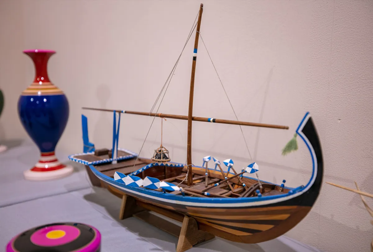 عند زيارة جناح المالديف، يشم الزائر رائحة الخشب والنشارة، والألوان أيضاً، التي تفوح من بين ثنايا القطع الفنية، ونماذج السفن التي حجزت لها مكاناً بارزاً، إذ تتنافس في رائحتها مع "عبير القهوة" التي يستخدمها الفنان أحمد في الرسم كبديل عن الألوان المائية، حيث يقول: "حرفة النحت على الخشب لا تقوم فقط على إنتاج العلب والمزهريات والصحون، وإنما تتسع لتشمل إنتاج نماذج من السفن التقليدية المعروفة في المالديف، وتستخدم للتنقل بين جزرها". عند معاينة التحف الخشبية، قد يلاحظ الزائر هيمنة ألوان الأحمر والأسود والأصفر عليها، وفي ذلك يقول أحمد: "هذه ألوان تقليدية في المالديف، الكثير من الحرفيين دأبوا على استخدامها على كافة القطع التي يقومون بنحتها". ويضيف: "رغم كونها ألوان أساسية، إلا أن هناك من أدخل ألواناً أخرى مثل الزهري والأخضر والأزرق والذهبي والفضي، وعادة مثل هذه الألوان تستخدم في الزخرفة، وبالطبع التنوع في الألوان يأتي في إطار توسيع نطاق الخيارات أمام الجمهور".