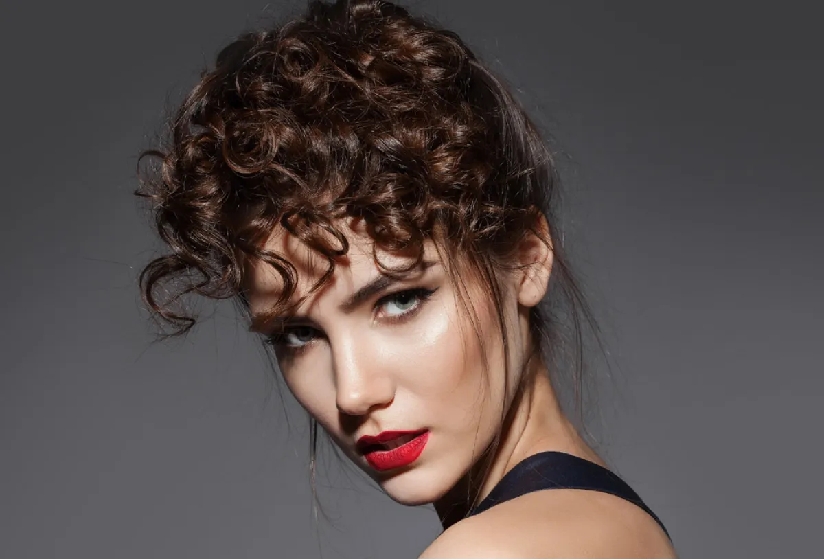 تسريحة شعر كيرلي رفيع مع الغرة المبعثرة