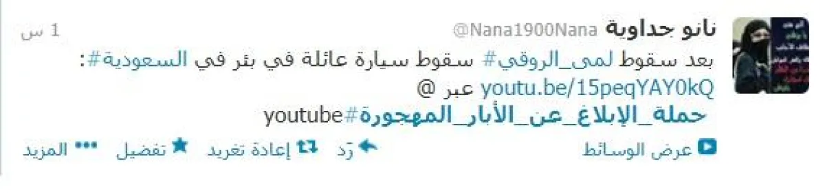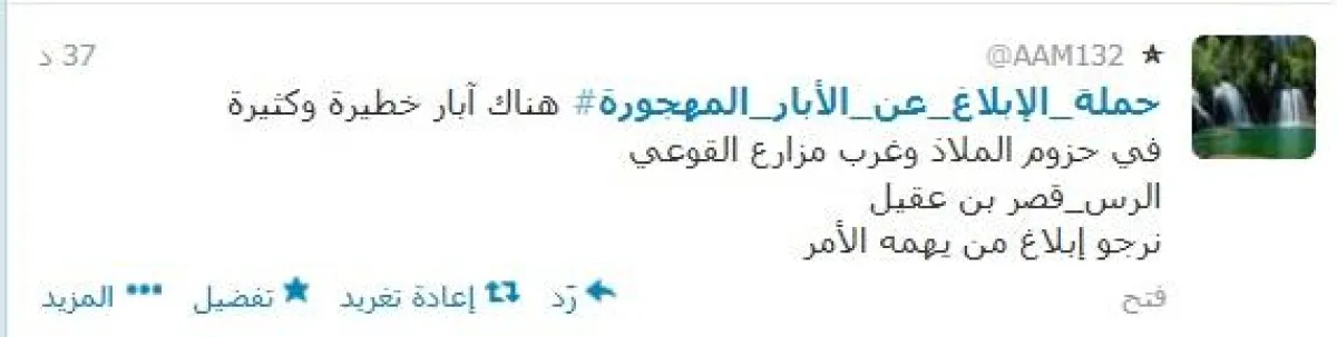 وعلى تويتر، تفاعل عدد كبير من المغردين مع هذه الدعوة التي جاءت تحت الهاشتاق الذي حمل وسم (#حملة_الإبلاغ_عن_الآبار_المهجورة).