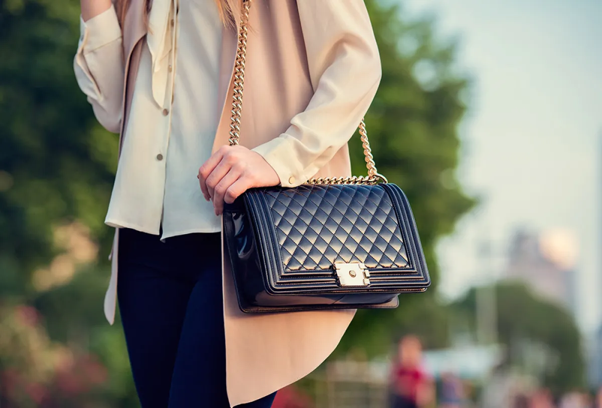 أصدرت دار شانيل مجموعة من الحقائب الجلدية السوداء، والتي تتبع موضة الحقائب الصغيرة وذات الشكل الهندسي، حقيبة مربعة الشكل، بيد من اللؤلؤ الأبيض مع حلية الماركة الذهبية الشهيرة، وخياطة متواربة على الجلد.