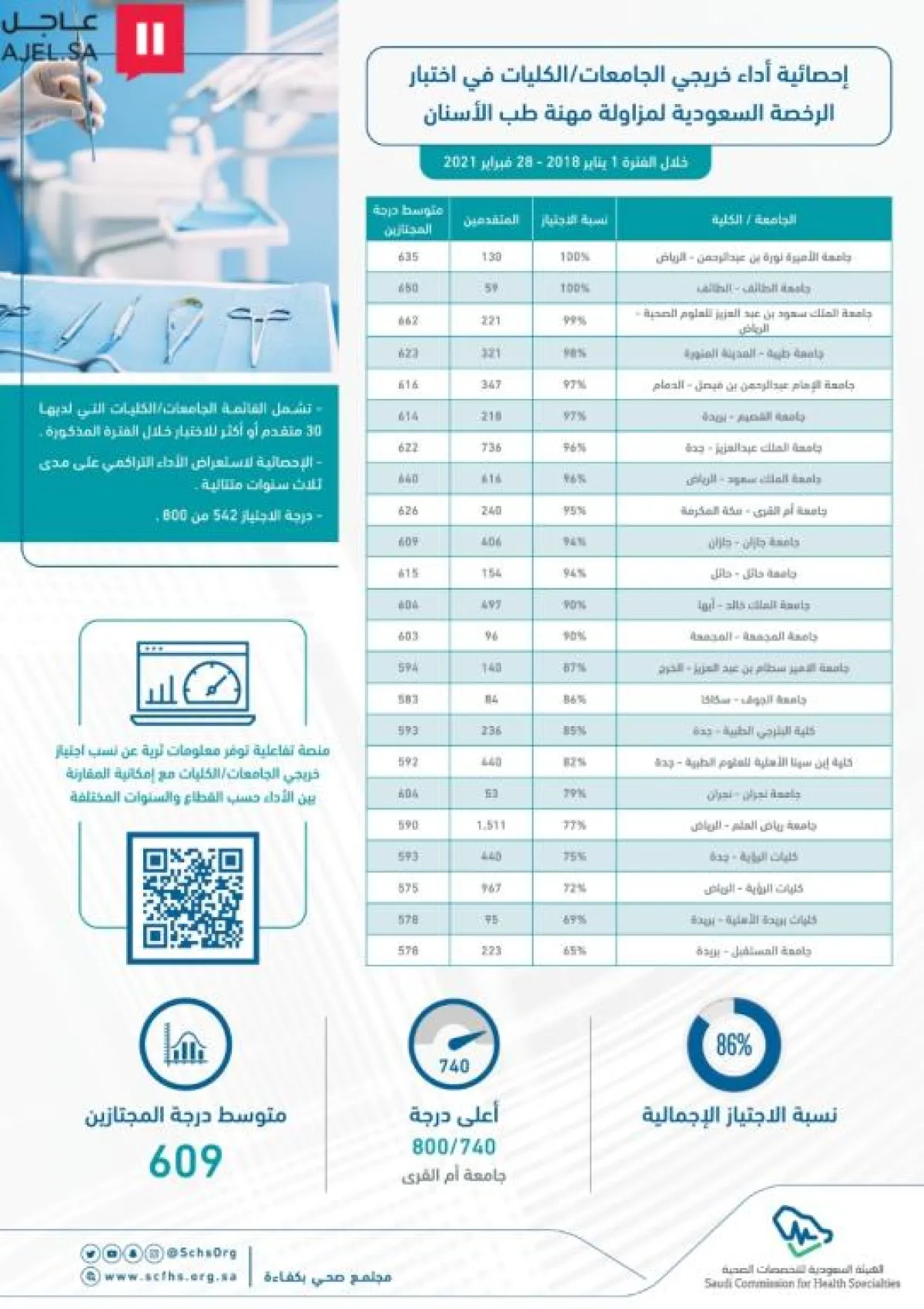 وأوضح المتحدث الرسمي للهيئة السعودية للتخصصات الصحية، فهد القثامي، أن الهيئة أتاحت منصة بيانات مفتوحة لمتابعة الإحصاءات الخاصة بأداء خريجي الجامعات والكليات من خلال الرابط: