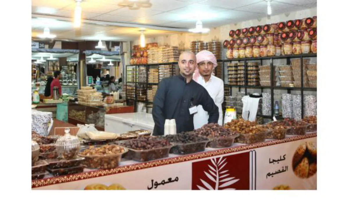 إذا دخلت الجناح تراه يتوّج بأنواع المعمول والكليجة التي تشتهر بها المملكة. فمن معمول الماما، ومعمول أم صالح، إلى معمول رغد، تظل حشوة التمر هي اللب، ومن قرص عقيلي بحبة البركة والعسل إلى أصبع المعمول الخاص بمرضى السكري.