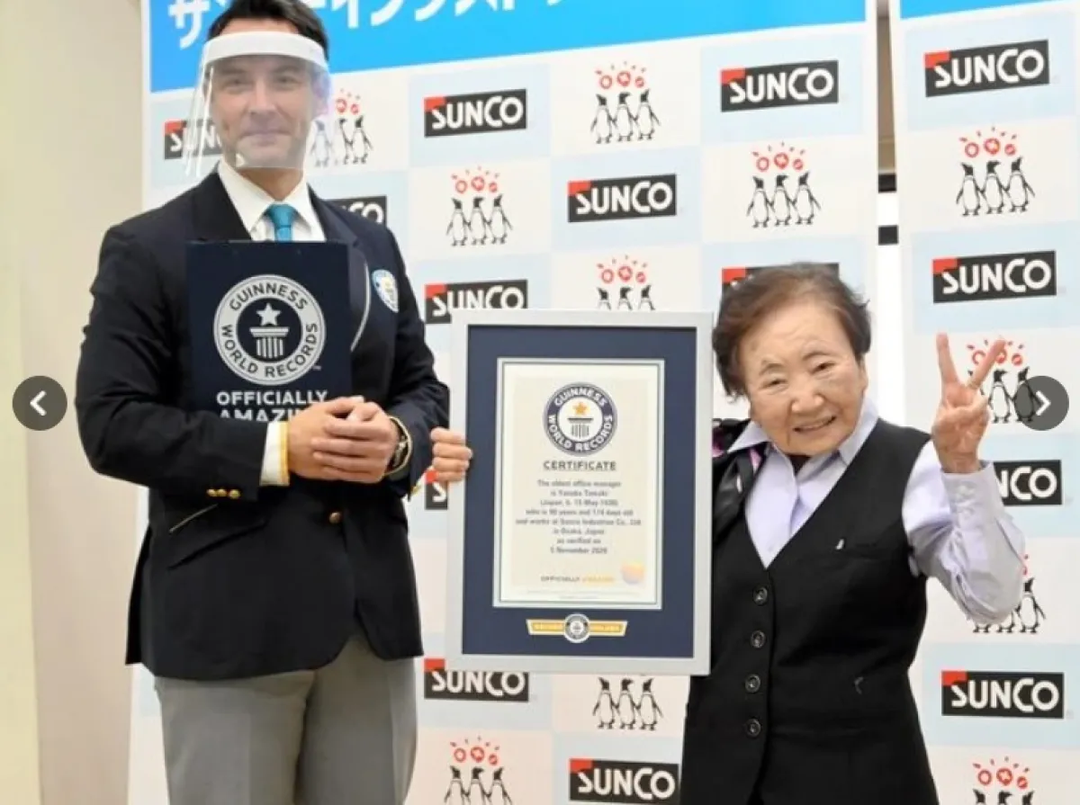 "التقاعد"، هي كلمة لا تعترف بها السيدة اليابانية ياسوكو تاماكي، التي تبلغ من العمر 90 عاماً، ولا يتضمنها قاموسها في الحياة، الأمر الذي أدخلها ضمن موسوعة "غينيس" للأرقام القياسية، كأكبر مديرة مكتب في العالم، حيث عملت لمدة 65 عاماً متواصلة بكل جد واجتهاد في مصنع Sunco Industries، المتخصص في إنتاج البراغي والذي تأسس عام 1956. وذلك حسب تغريدة نشرها موقع "الإمارات 24" عبر تويتر، لتكون بذلك نموذج يحتذى به لنساء ناجحات وتمكن من ترك بصمة.