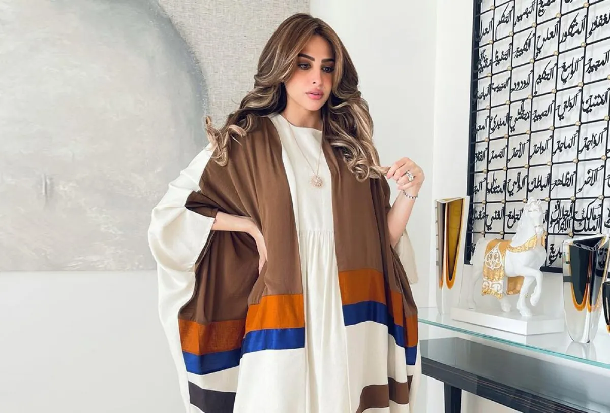 فوز الفهد بجلابية فاخرة بكتابات عربية