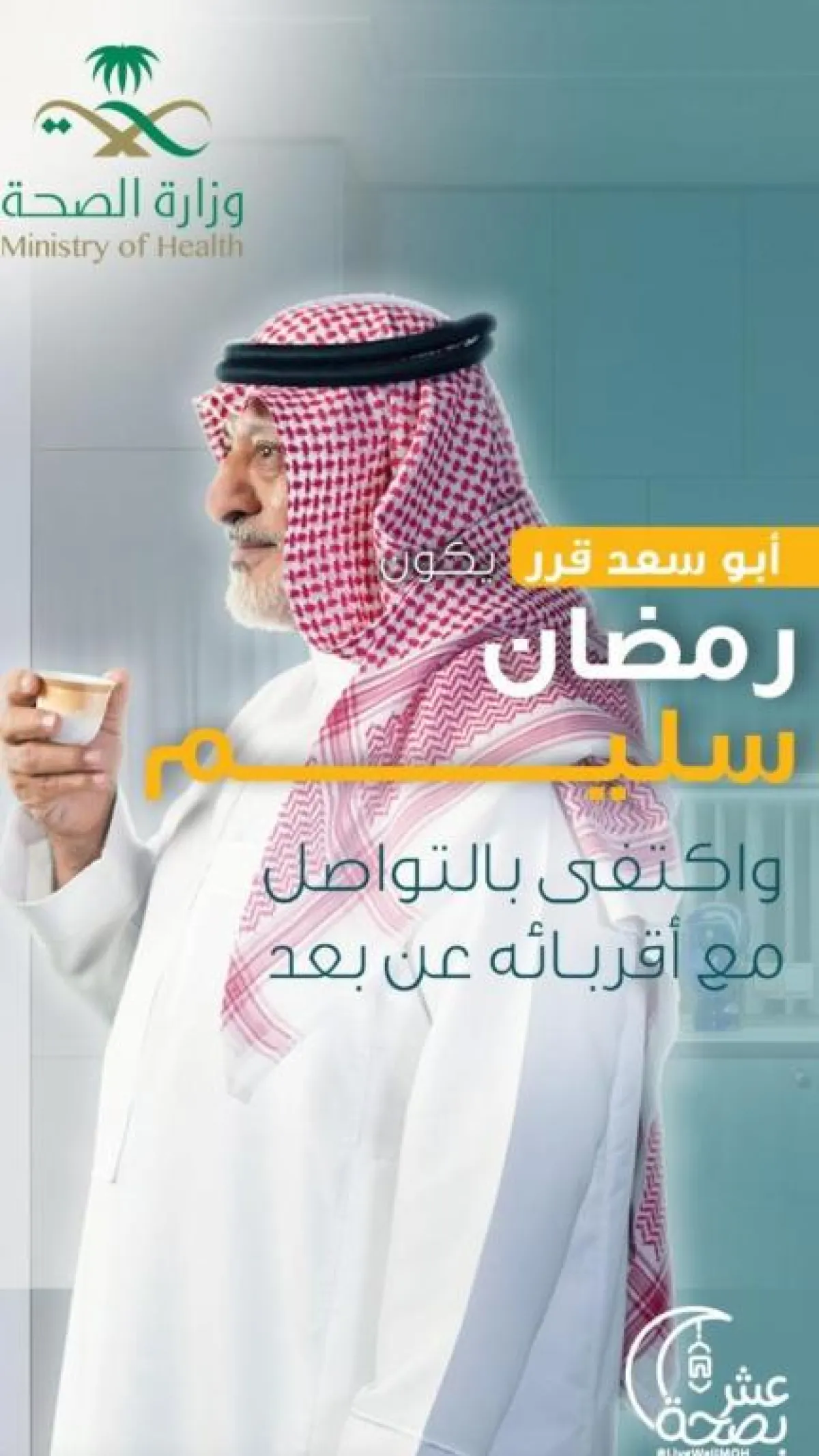 أطلقت وزارة الصحة السعودية مع بداية الشهر الكريم حملة توعوية صحية تحت شعار "رمضان سليم"، والتي تسعى من خلالها إلى التأكيد على أهمية الالتزام بالإحترازات الوقائية في شهر رمضان المبارك للحد من إنتشار كورونا ، حيث تستهدف الحملة كافة أفراد المجتمع بمختلف شرائحهم وفئاتهم .