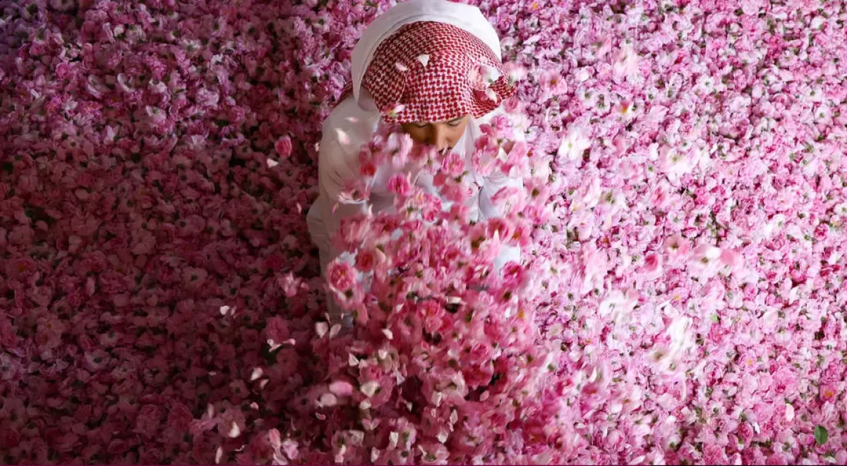 ويرعى العاملون في مزرعة بن سلمان شجيرات الورد ويقطفون عشرات الآلاف من الزهور كل يوم لإنتاج ماء الورد والزيت المكونات الثمينة الخاصة بصناعات التجميل وكذلك الطهي.