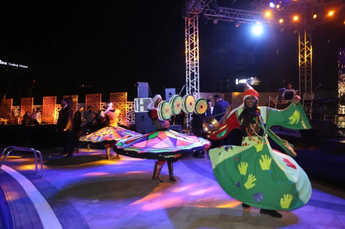 افتتح عدد كبير من النجوم والمشاهير أولى ليالي خيمة «فتافيت السكر» بفندق شيراتون الدقي، ومنهم خالد الصاوي وحرمه، وبسمة، وبشرى وزوجها رجل الأعمال سالم هيكل، وسامر المصري، ومنذر رياحنة، ودرة وزوجها رجل الأعمال هاني سعد، وأمير شاهين وحرمه، وصفاء جلال، ووليد عناني، وساندي، وعصام كاريكا، وشيماء ناجي، ولينا شاماميان، وعازف الجيتار الشهير وحيد ممدوح، وأحمد حاتم، والمخرج عمرو سلامة، وشريف باهر، ومصطفى درويش، وبسنت الحسيني، ومريم رحومة مسؤول مهرجان قابس السينمائي بتونس، وحسين نصار، ومحمد يسري، وإيمان حميدة، والمنتجة إيمان خليل، والستايلست سعيد رمزي، وأمجد أبوالعلا وناريمان خالد ملكة جمال مصر، ونغم جبر، وطوني ماهر، وأحمد عصام، وياسمين الهواري، ومحمد قماح وزوجته، وقام بغناء أغنبته الشهيرة «أنا مش نجيب ساويرس»، وغيرهم من نجوم الفن والمجتمع والمشاهير، وأحيا الحفل المطرب الشعبي حسن شاكوش، بالإضافة إلى التخت الشرقي ورقصة التنورة، واستمر الحفل على أنغام «الد جي» حسن علي.