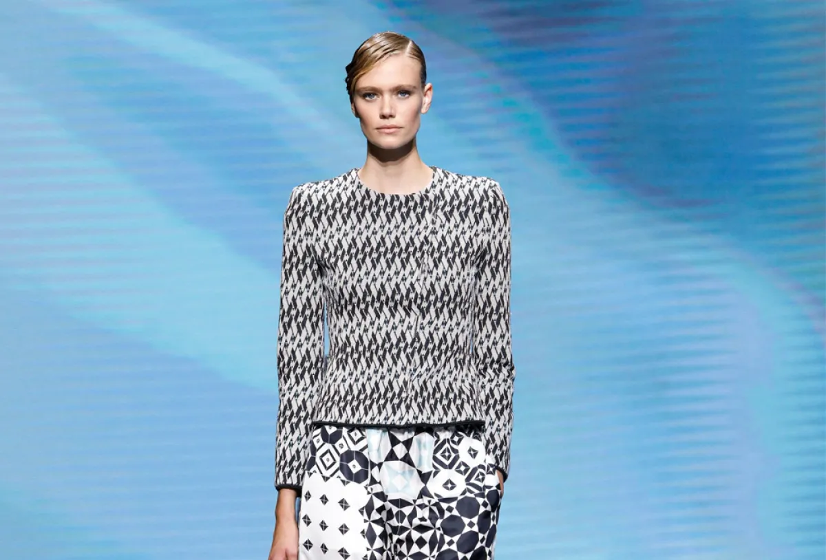 قدمت ماركة جورجيو أرماني Giorgio Armani، العديد من التصاميم الأنيقة لموديلات بلايز في مجموعاتها لربيع وصيف 2021، أعجبنا منها هذه البلوزة المُصممة بأكمام طويلة، مع رقبة دائرية وأكتاف عريضة، فيما جاء التصميم باللونين الأبيض الأسود على شكل رسمات هندسية تشبه إلى حد كبير رسمة الكاروه.
