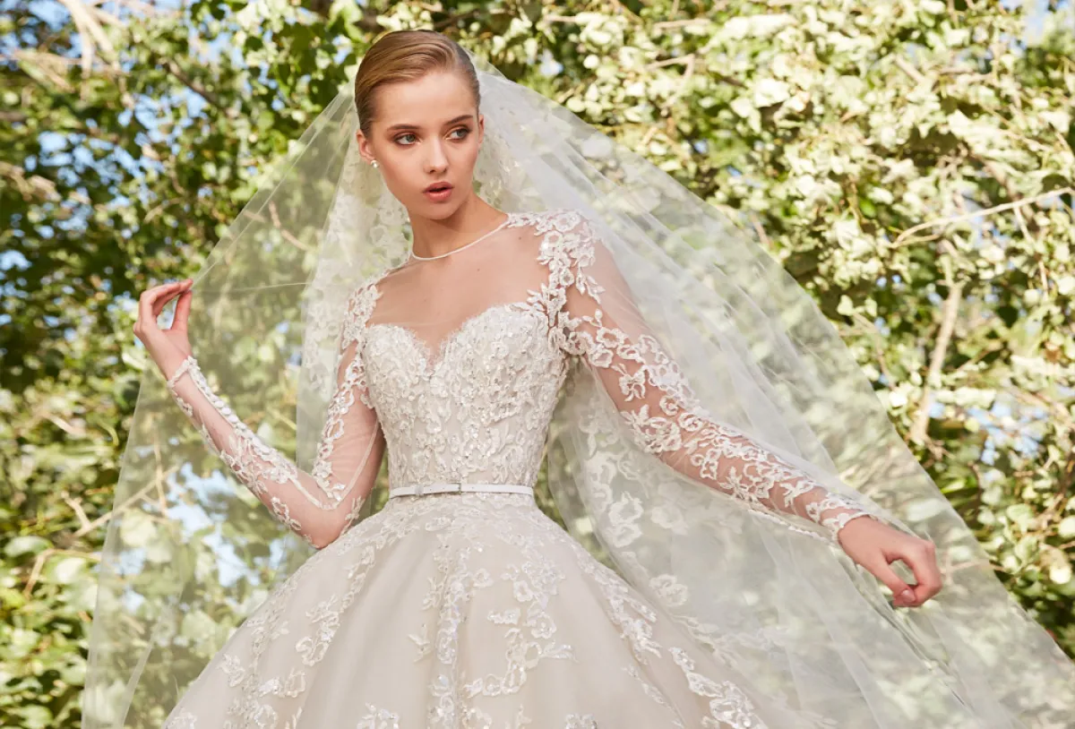 ضمن صيحات فساتين زفاف 2021 الكثير من الموديلات والتصاميم الجميلة للعروس، لكن وجدنا لك عروستنا صيحة الأكمام الشفافة من فساتين عروس 2021. هذه الصيحة تناسب جميع العرائس وتعطيك إطلالة أنيقة ومحتشمة:
