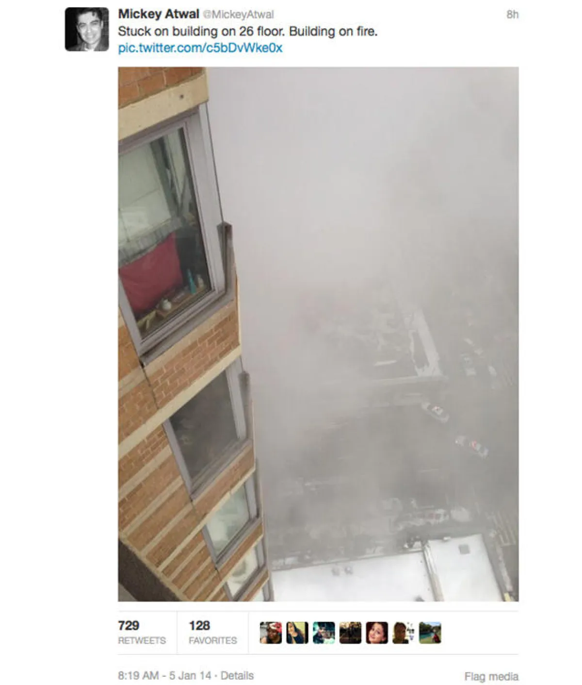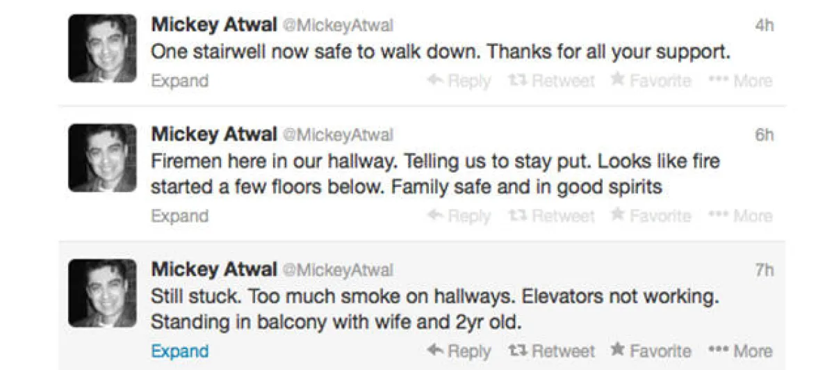 استنجد رجل في الولايات المتحدة الأميركيَّة عبر «تويتر»، طالباً النجدة حينما حاصرته ألسنة اللهب المشتعلة في شقته الواقعة في الطابق السادس والعشرين في مانهاتن.
