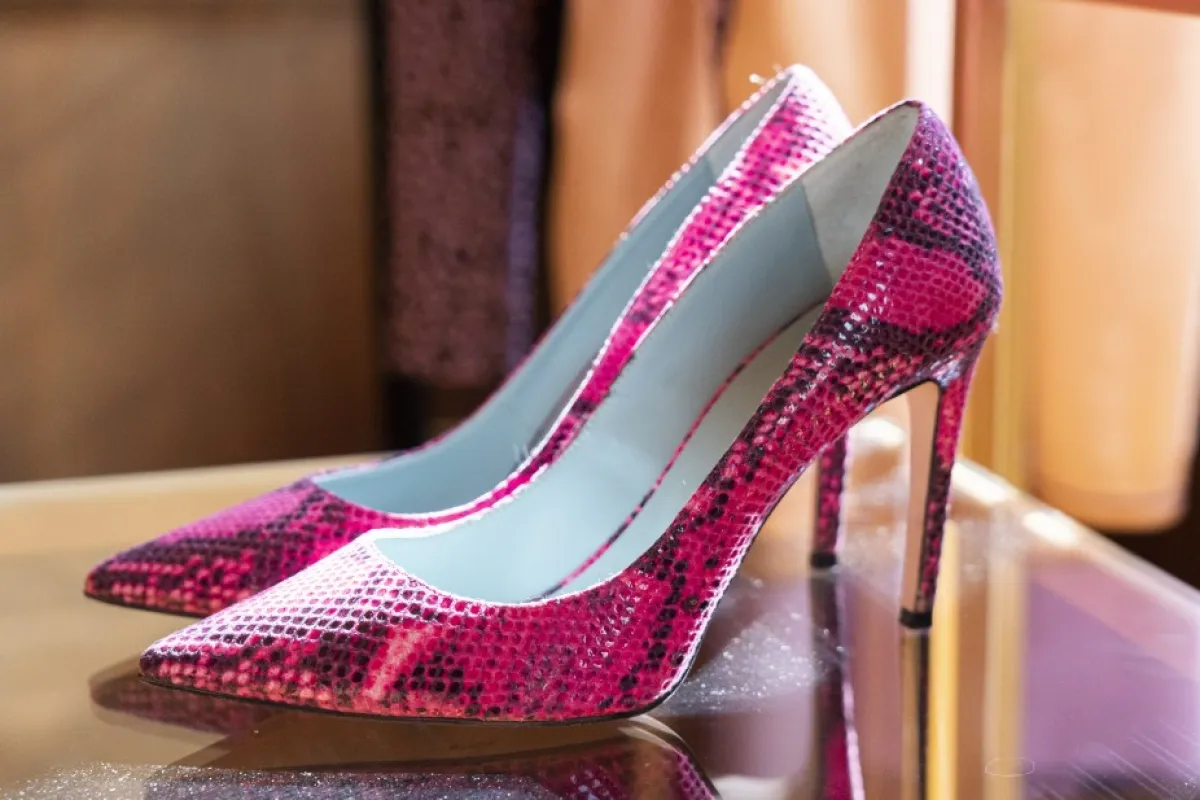 أما الحذاء البرّاق الرفيع ذو الكعب العالي، فيتميّز بالتطريز الذي يغمره مع الطبعات النافرة التي تخلق مزيجاً بين الألوان الذهبية، خاصة إذا تمّ تنسيقه مع الجمبسوت الذهبي أو فساتين السهرة الطويلة.