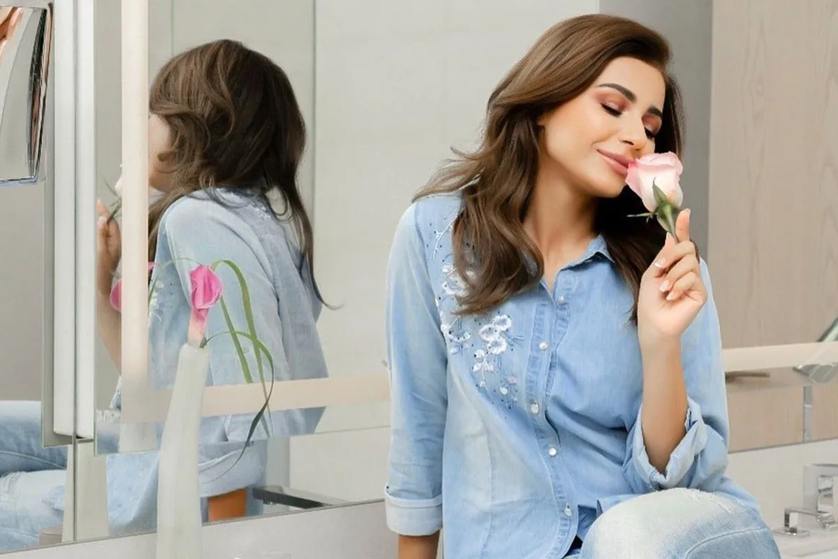 ارتدي لونين مختلفين من الدنيم كما فعلت مهيرة فارتدت القميص الدنيم المطرز مع سروال سكيني مزدان برسوم ملونة وانتعلت حذاء شفافاً أنثوياً. كما تزينت بأقراط ثريا كبيرة.