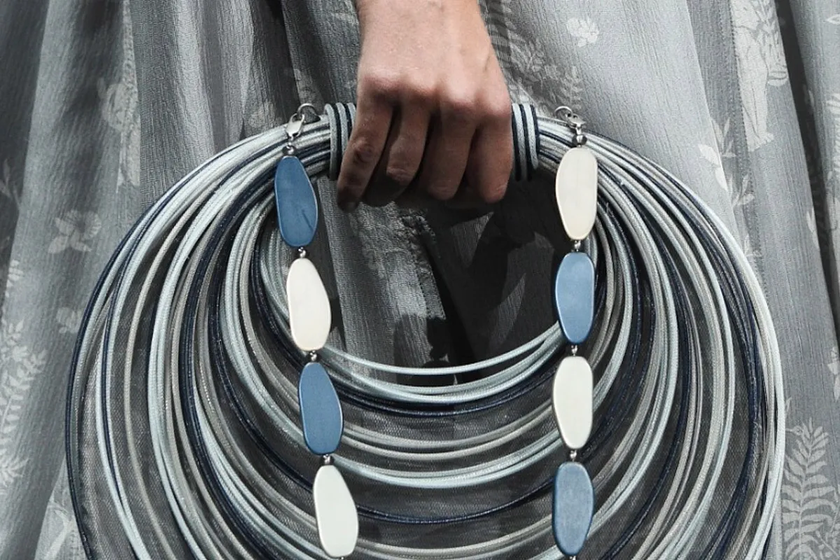 ظهرت صيحات حقائب جريئة ومبتكرة في هذا العام من تصميم الحقائب ، قدمت ماركة Giorgio Armani حقيبة يد مُصممة بشكل دائري مُكونة من ثلاثة ألوان، الأبيض والرمادي والكُحلي من شبكات متواصلة ببعضها، وسلسلة من الإكسسوار من الحجر باللون الأبيض والأزرق الباستيل لتكّون إطلالة ذات أناقة عصرية.