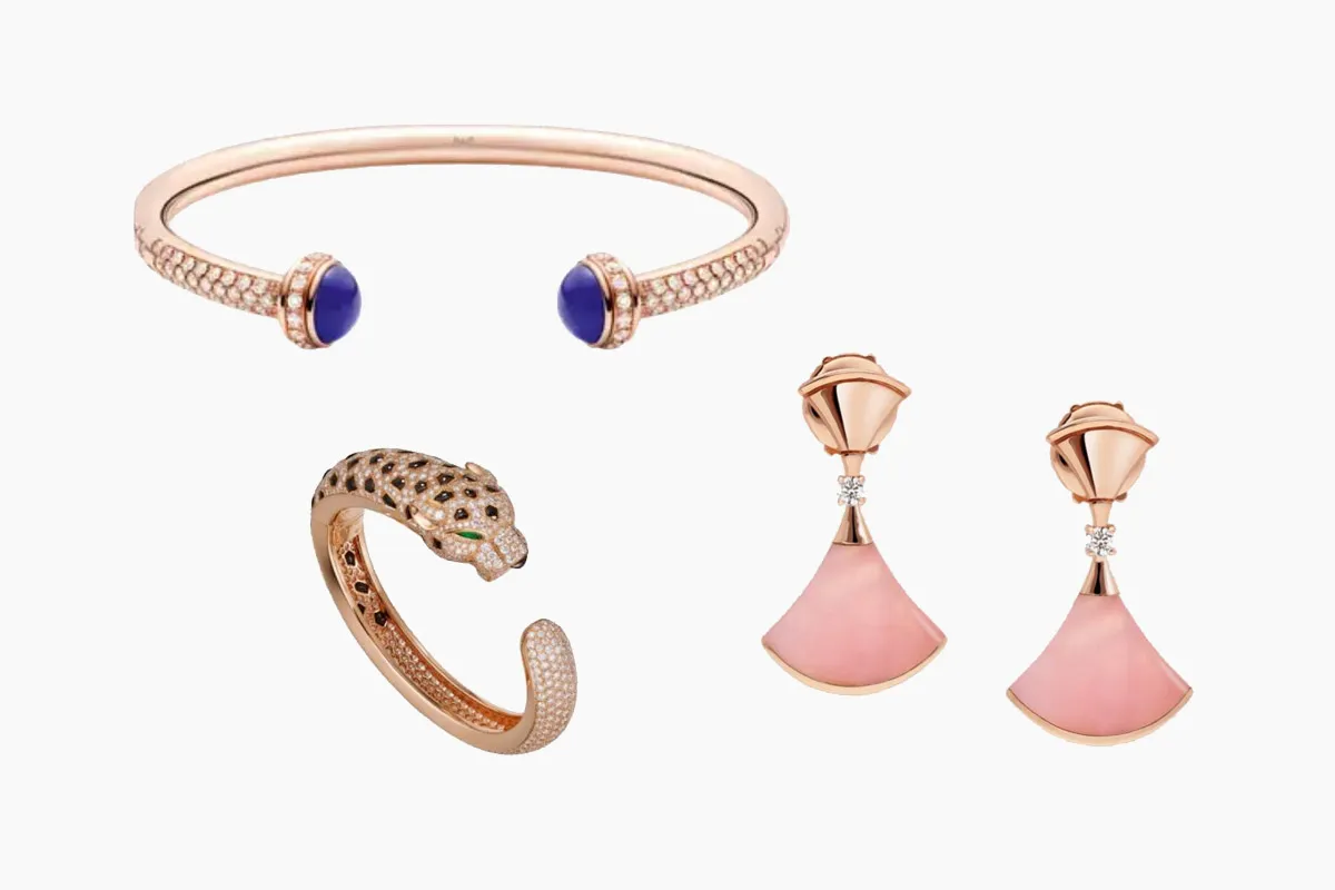 تختصر هذه الأقراط من بولغري Bvlgari الأناقة الإيطالية المطلقة بأسطورة النجمة بجمالها الغامض، وتُصَمَّمُ بشكل مروحي مفعم بالرقة والأناقة، ويستلهم من فسيفساء حمامات الإمبراطور كراكلا الرومانية، فيما يعكس الرابط الأزلي الذي يجمع بولغاري مع المدينة الخالدة عبر تصميم عصري وأحجار كريمة باهرة وألوان ساحرة، وتُصَمَّمُ هذه الأقراط من الذهب الوردي عيار 18 قيراطاً والمرصعة بالأوبال الوردي والألماس المرصوف.