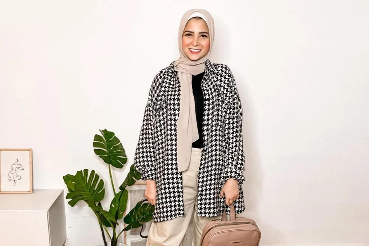 الكاروهات تُعَدُّ صيحة كلاسيكية لا تبطل موضتها مع مرور السنوات، ولأنها من الأفكار الأكثر رواجاً في معاطف المحجبات المحتشمة، فقد تزينت الإعلامية والمؤثرة على وسائل التواصل الاجتماعي، جهاد البنا، بمعطف طويل بكاروهات اللونين الأبيض والأسود مع بنطلون من الجينز الأزرق وتيشيرت أسود ناعم، وأكملت اللوك باكسسوارات اللون الأسود إلى جانب حجاب أبيض بقَصَّة منسدلة.