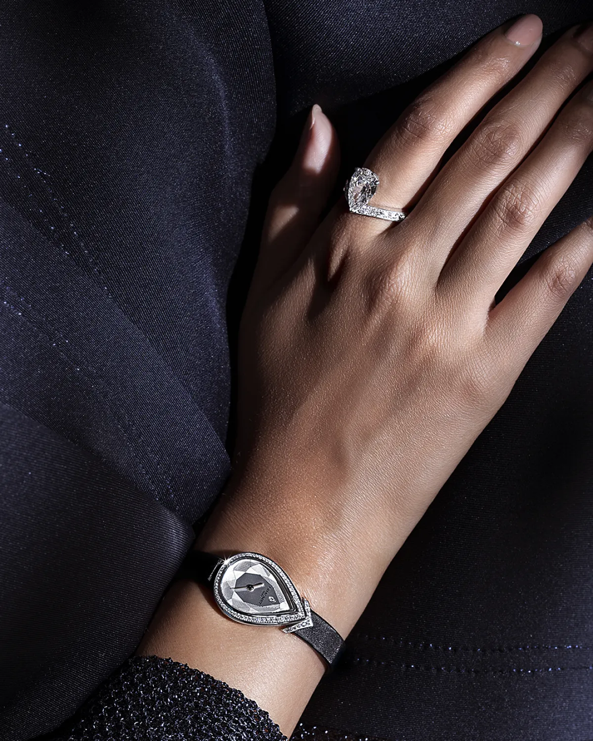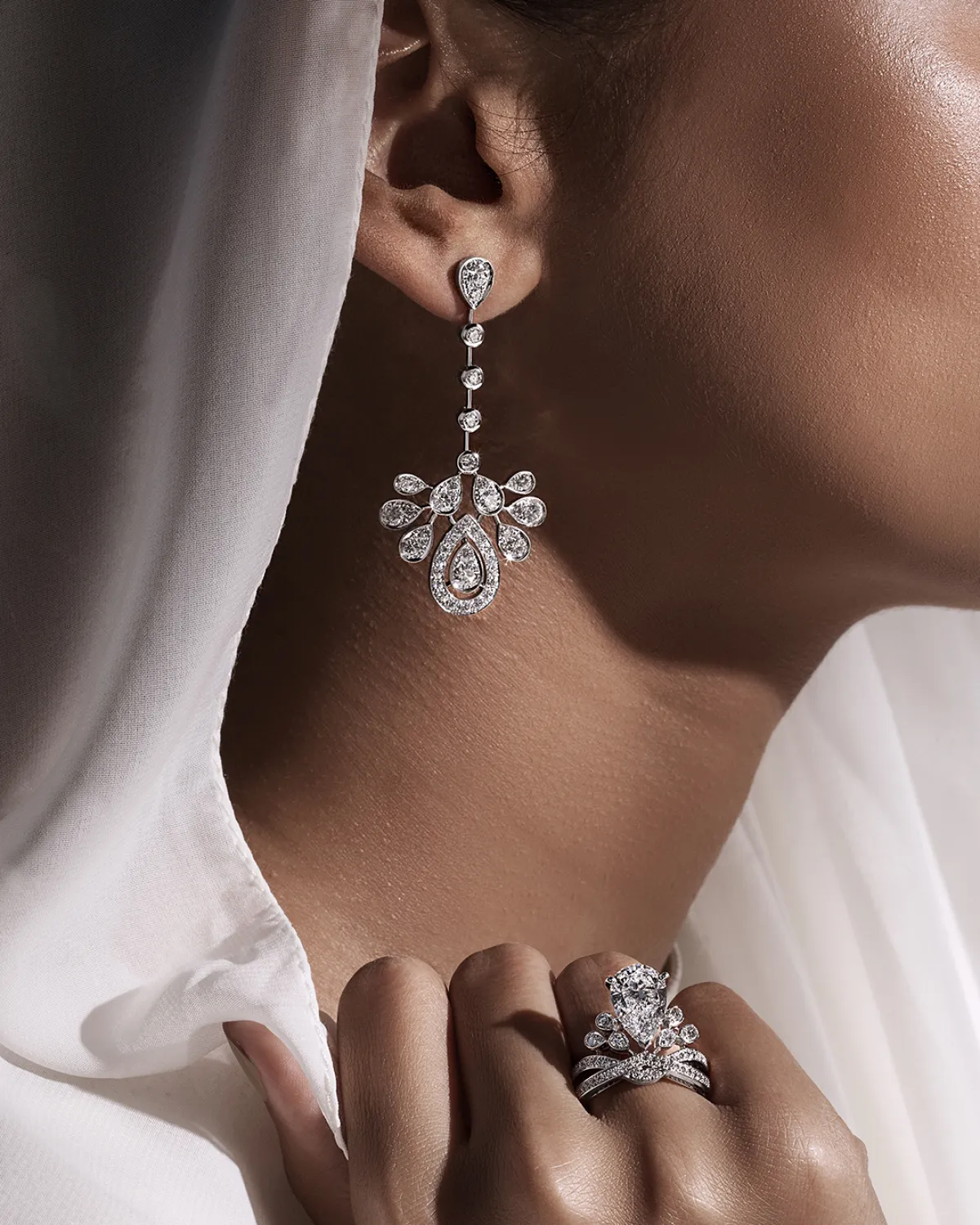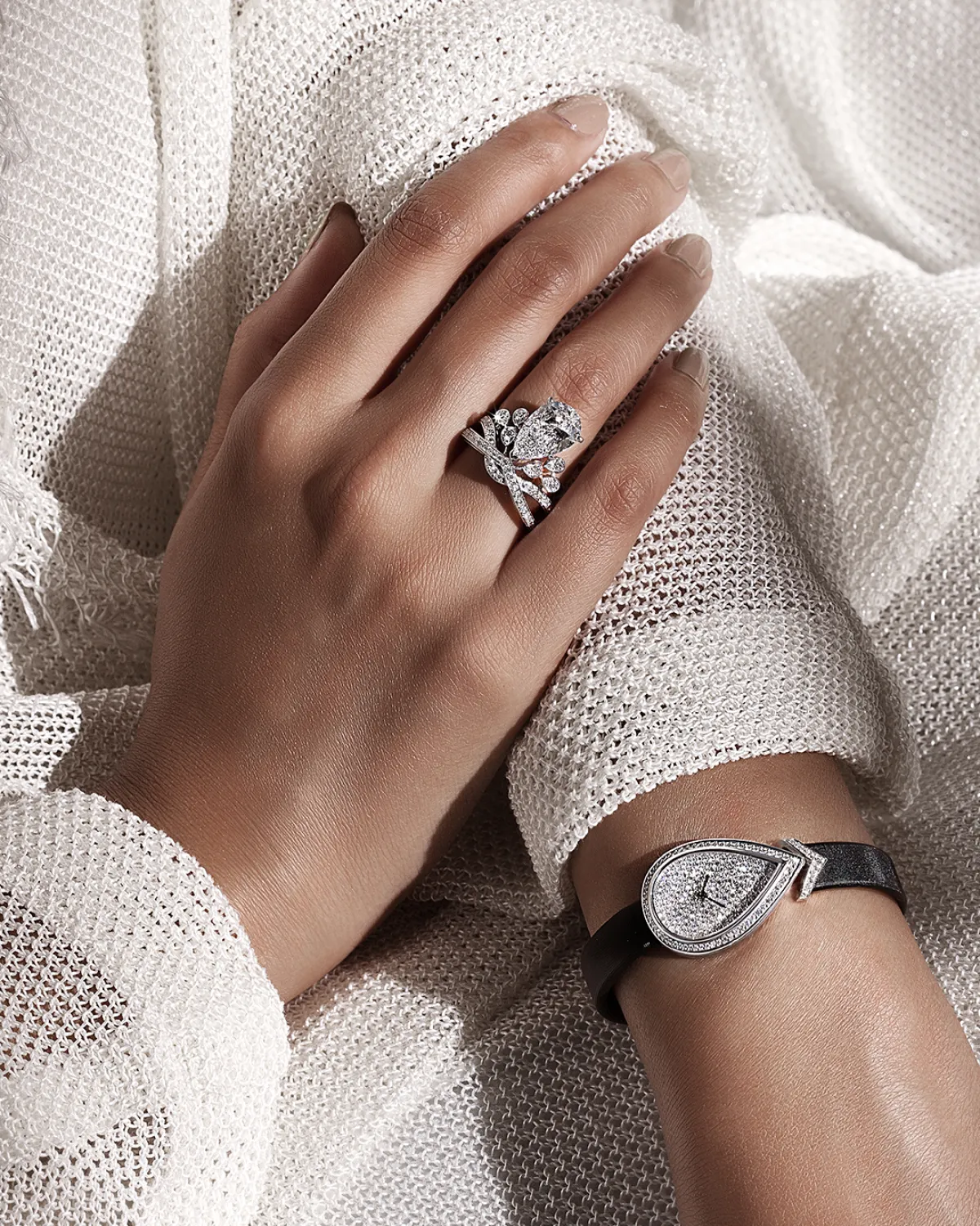 الأحجار ذات القطع الإجاصي تتوسط التصميم متميّزةً بمنحنياتها المتناظرة التي تؤكد على ارتفاع التاج. وهي تنسكب في قرط يتمّ ارتدائه بأسلوب عصريّ جداً أو تلتفّ حول عنق من خلال عقد ملوكيّ. وتأتي تقنيّة "فيل كوتو" التي تجعل المعدن يختفي مما يُبرز تألّق الأحجار، لتعكس كل مهارة مشاغل الدار الواقعة في 12 شارع فاندوم الباريسي.