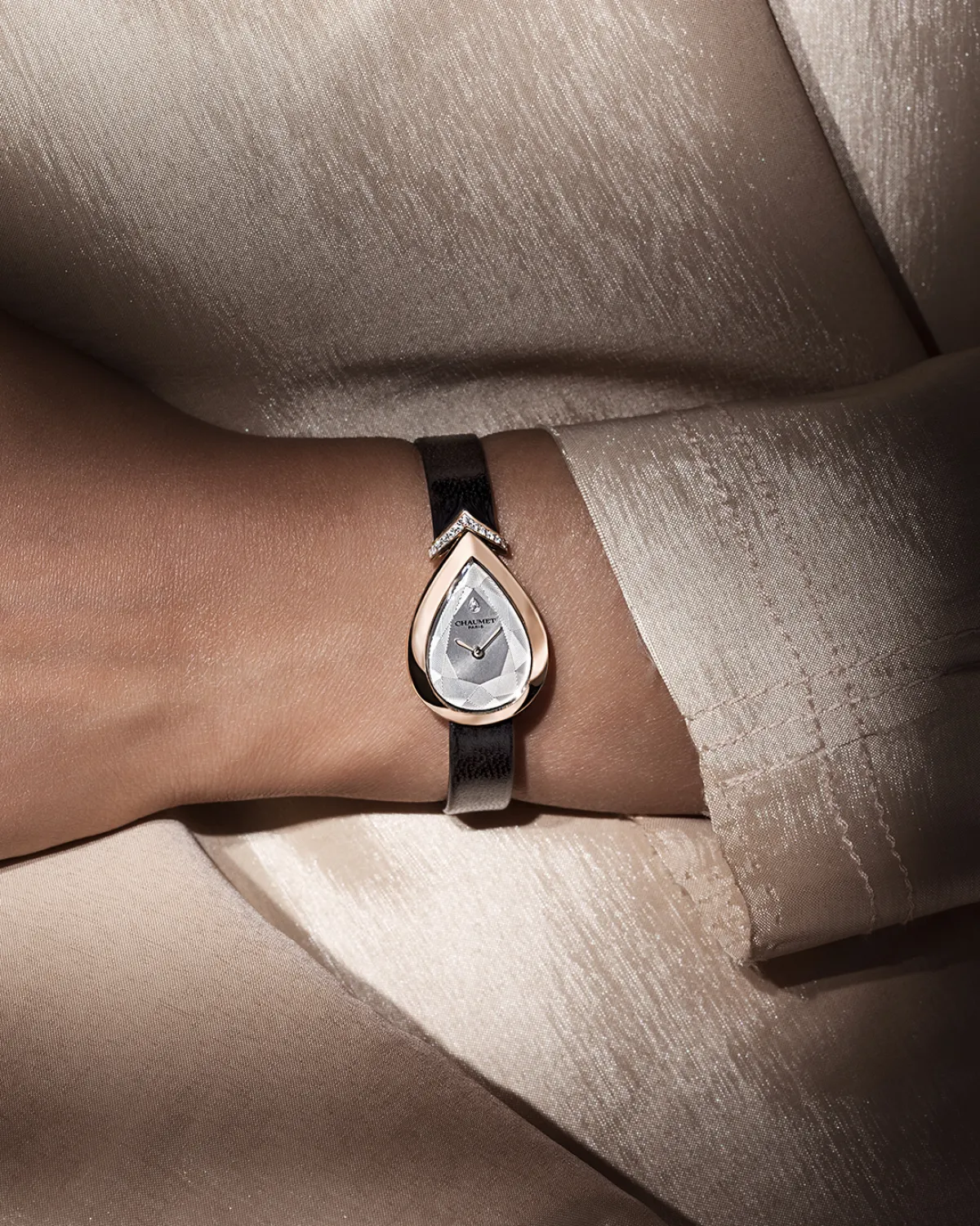 تشكّل ساعة "جوزفين إيغريت" الفاخرة تعبيراً عن براعة دار "شوميه" واهتمامها بالتفاصيل. وهي تجسّد بامتياز مهارة الدار في الإستعانة بفن الخدع البصريّة لتنفيذ ساعة بتصميم إجاصيّ الشكل تزيّنها ماسات بالقطع اللمّاع.
