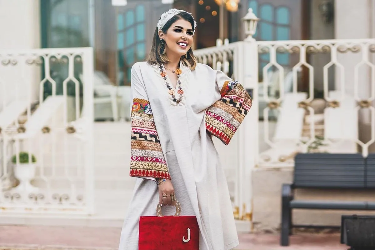 في إحدى إطلالاتها التلفزيونية، أطلت الممثلة الكويتية، غدير السبتي، بجلابية بيضاء واسعة مزينة بحزام للخصر مطرزة بالزهور الذهبية في الجزء العلوي للتصميم، مع أكمام منفوخة بيضاء مطبعة باللون الأزرق، وأكملت اللوك بمجوهرات ذهبية بتصاميم متنوعة مع تسريحة مرفوعة للشعر بأسلوب ذيل الحصان المزدوج، مع مكياج أصفر وبني ناعمين.