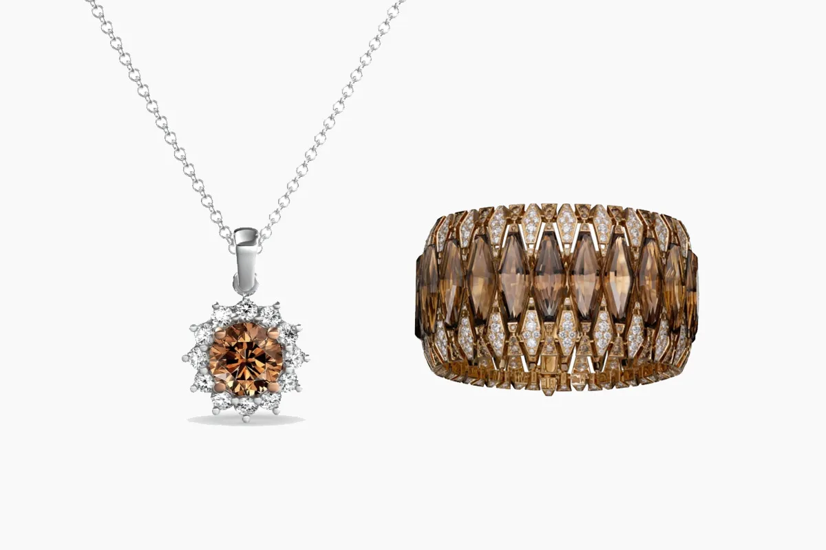 مجوهرات مرصّعة بحجر الألماس البُني موضة هذا الموسم