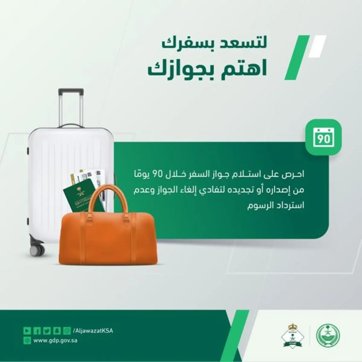 وتفصيلاً، فقد أكدت الجوازات في تغريدة على موقع "تويتر"، على أنه ينبغي استلام جواز السفر خلال 90 يومًا من إصداره أو تجديده، وذلك لتفادي إلغاء الجواز وعدم استرداد الرسوم.