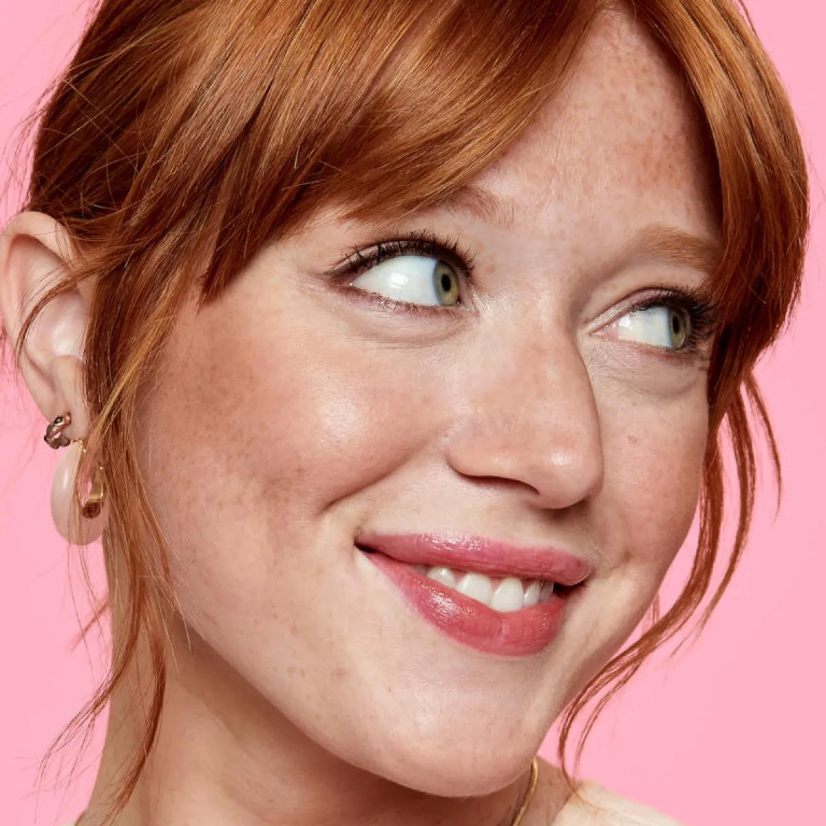 Hoola Glow على النقاط الناتئة من الوجه لإضفاء لمسة مُشرقة وبرونزية.