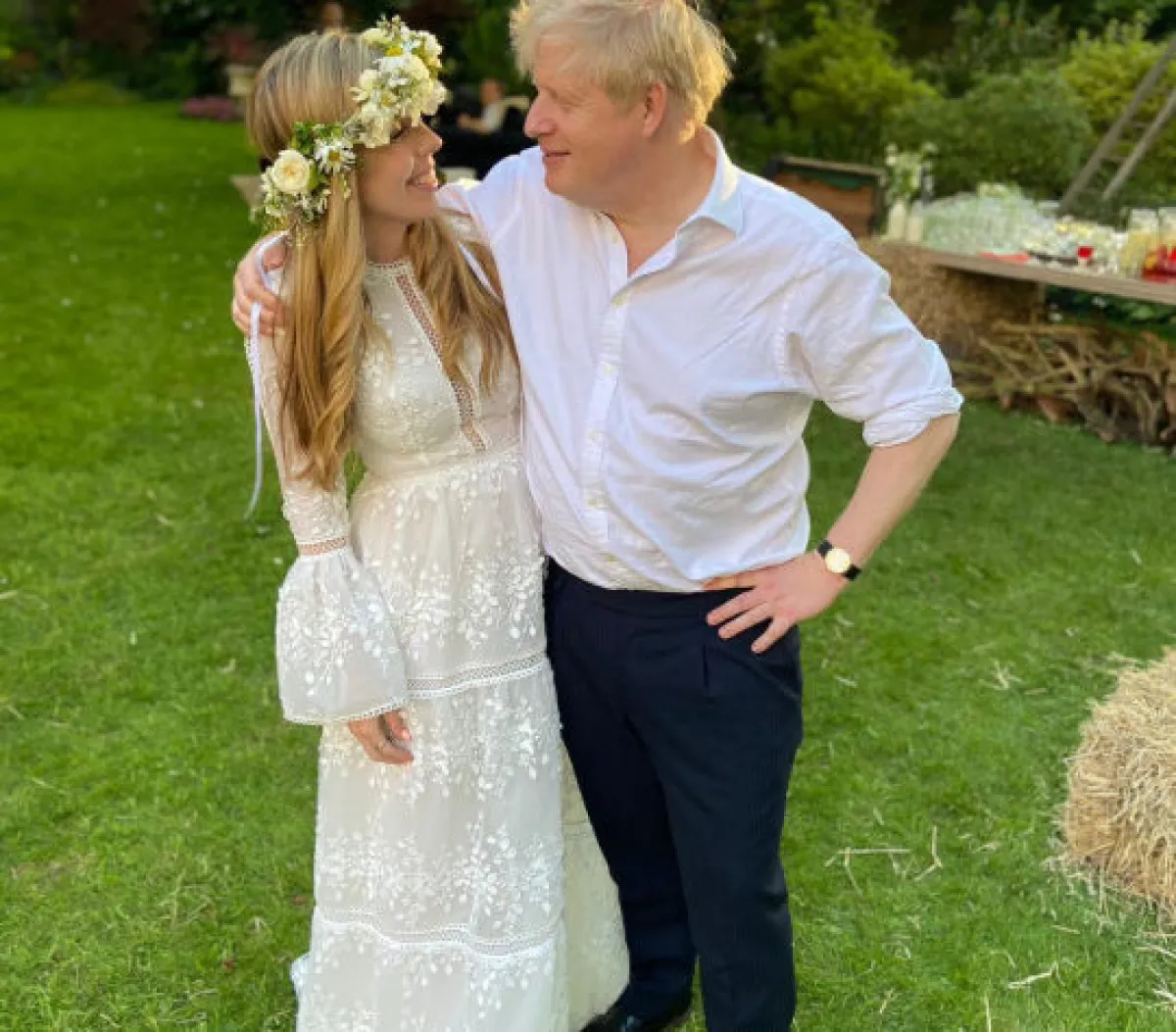 وتبادل جونسون البالغ من العمر 56 عامًا، الوعود مع سيموندس، 33 عامًا، أمام مجموعة من الأصدقاء المقربين والعائلة، ليصبح أول رئيس وزراء يتزوج في منصبه منذ أن تزوج اللورد ليفربول من ماري تشيستر في عام 1822.