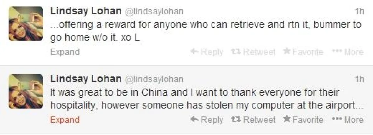 وخوفاً من الفضحية، عرضت Lindsay في تغريدة لها على "تويتر" جائزة لمن يجده ويعيده إليها، من دون أن تحدّد مقدار المبلغ الذي ستعطيه للفاعل، مع التأكيد ألا مشكلة لديها في دفع أيّ مبلغ.