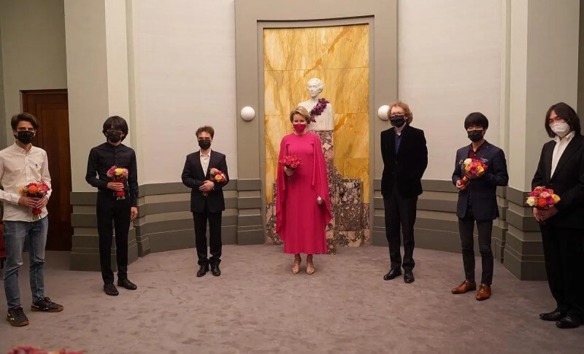 حضرت الملكة «ماتيلد» من بلجيكا الحفل النهائي في مسابقة الملكة «إليزابيث» للبيانو 2021 وإعلان الفائزين في قاعة «هنري لو بوف» في مركز بوزار للفنون الجميلة في بروكسل.