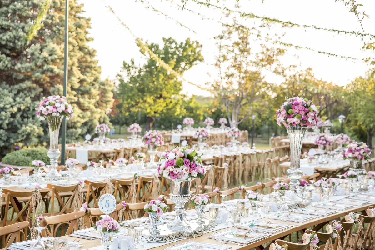 حفلات الأعراس التي تنظّم في الحدائق تعدّ الأجمل، وتتراوح تكلفتها بحسب الزينة المختارة لها في الهواء الطلق. وفي هذا الإطار، تدعو مهندسة الديكور ريهام فرّان إلى ضرورة دراسة حجم الحديقة نسبة لعدد المدعوين، وشكل الحديقة سواء كانت الأخيرة مستطيلة أو مربعة أو دائرية، لاختيار الزينة المناسبة وتنسيق الطاولات.