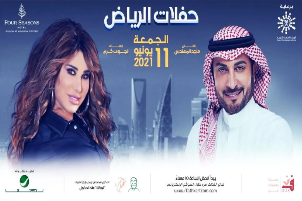 أعلنت شركة روتانا المنظِمَة لحفلات الرياض عن بدء بيع تذاكر حفلة الفنانَيْن ماجد المهندس ونجوى كرم ليوم الجمعة 11 يونيو 2021، في تمام السادسة مساءً من يوم السبت عبر موقع تذكرة الإلكتروني.