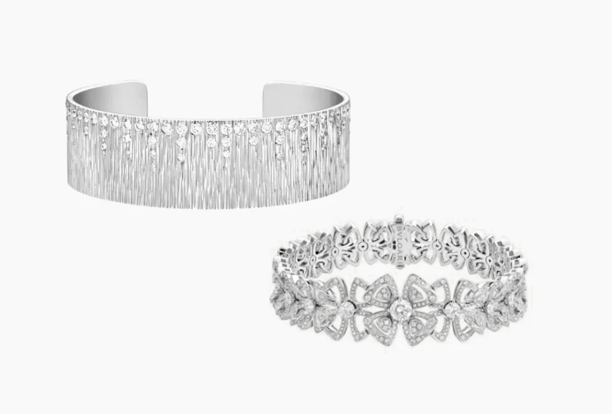 تتميز الأساور العريضة بأناقتها وفخامتها، وهو ما يجعلها خياراً مثالياً للإطلالات المسائية والسهرات. وقد قدمت أشهر الماركات العالمية تصاميم راقية وجذابة للأساور العريضة، المرصعة بالألماس، لإطلالة أكثر فخامة وجاذبية تليق بعروس 2021 هذا الصيف.