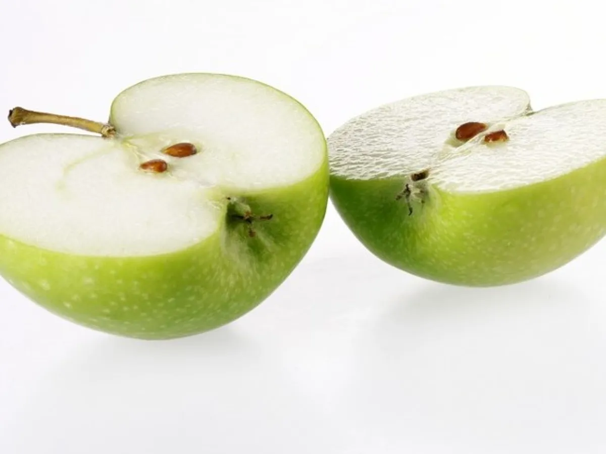 1- يسكب عصير الليمون الحامض على مكعبات التفاح، وتوضع جانباً.