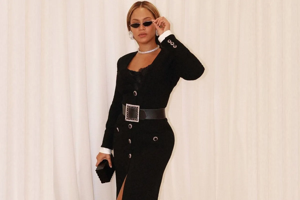 إذا كنت تتمتعين بخصر رفيع يمكنك إبرازه كما فعلت بيونسي في هذا الفستان المزدان بالأزرار والمزدان بحزام عريض عند الخصر.