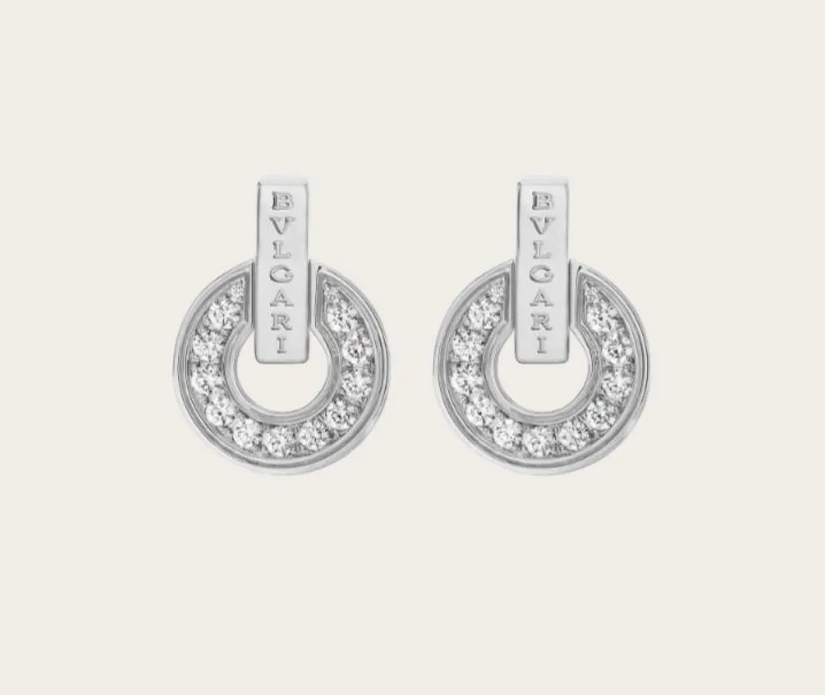 فقد لفتتنا هذه الأقراط بتصميم دائري من الذهب الأبيض عيار ١٨ قيراطاً، المُرصع بالألماس المرصوف بالكامل على الشكل الدائري الأيقوني للمجموعة لتصميم جديد مخرم يمزج الأشكال المدهشة مع الروح المرحة التي لا مثيل لها في بولغري والاستخدام المميز للألماس