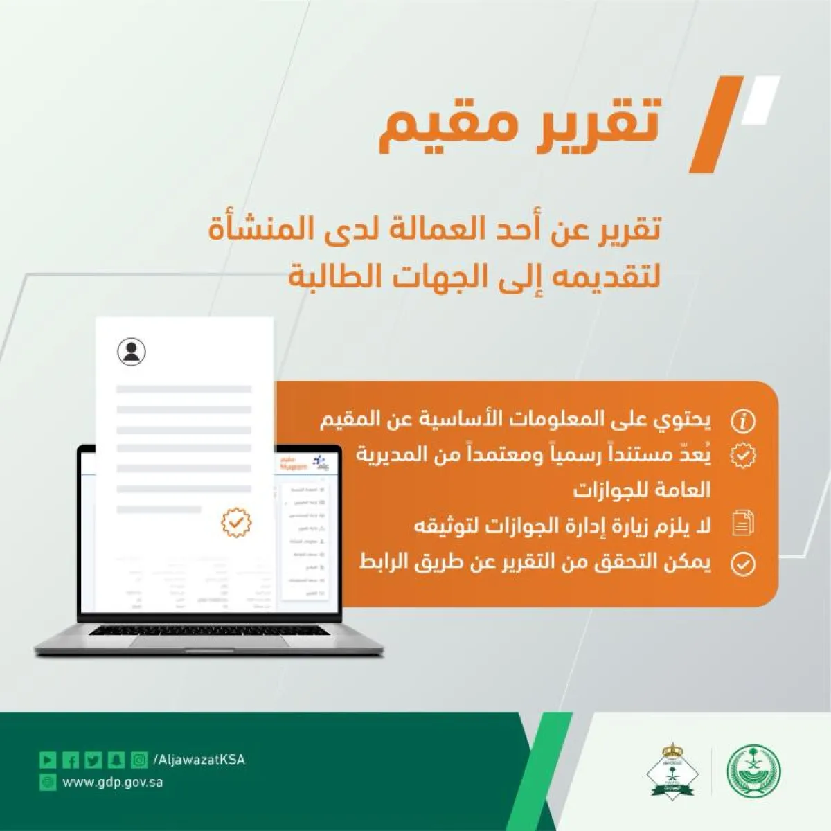 خدمة بوابة مقيم تتيح للمنشآت إصدار تقارير العاملين لديها