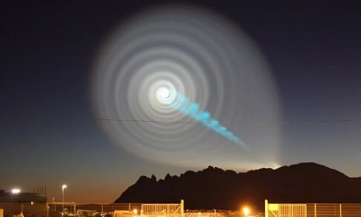 وأوضح عالم الفلك الأمريكي جوناثان ماكدويل أن هذا المشهد الغريب ناتج عن وقود أطلقه صاروخ “لونج مارش 2 سي” الصيني الذي تم إطلاقه في نفس اليوم، وقال ماكدويل: "حدث الشكل اللولبي بعدما انهار الصاروخ من نهايته بينما ينفث وقوده - فهو يشبه رشاش الحديقة المائي تمامًا"، وباستثناء وجوده في الفضاء يظل الشكل الحلزوني واضحا في السماء على بعد مئات الأميال لأنه لا يوجد هواء يفسد الشكل.