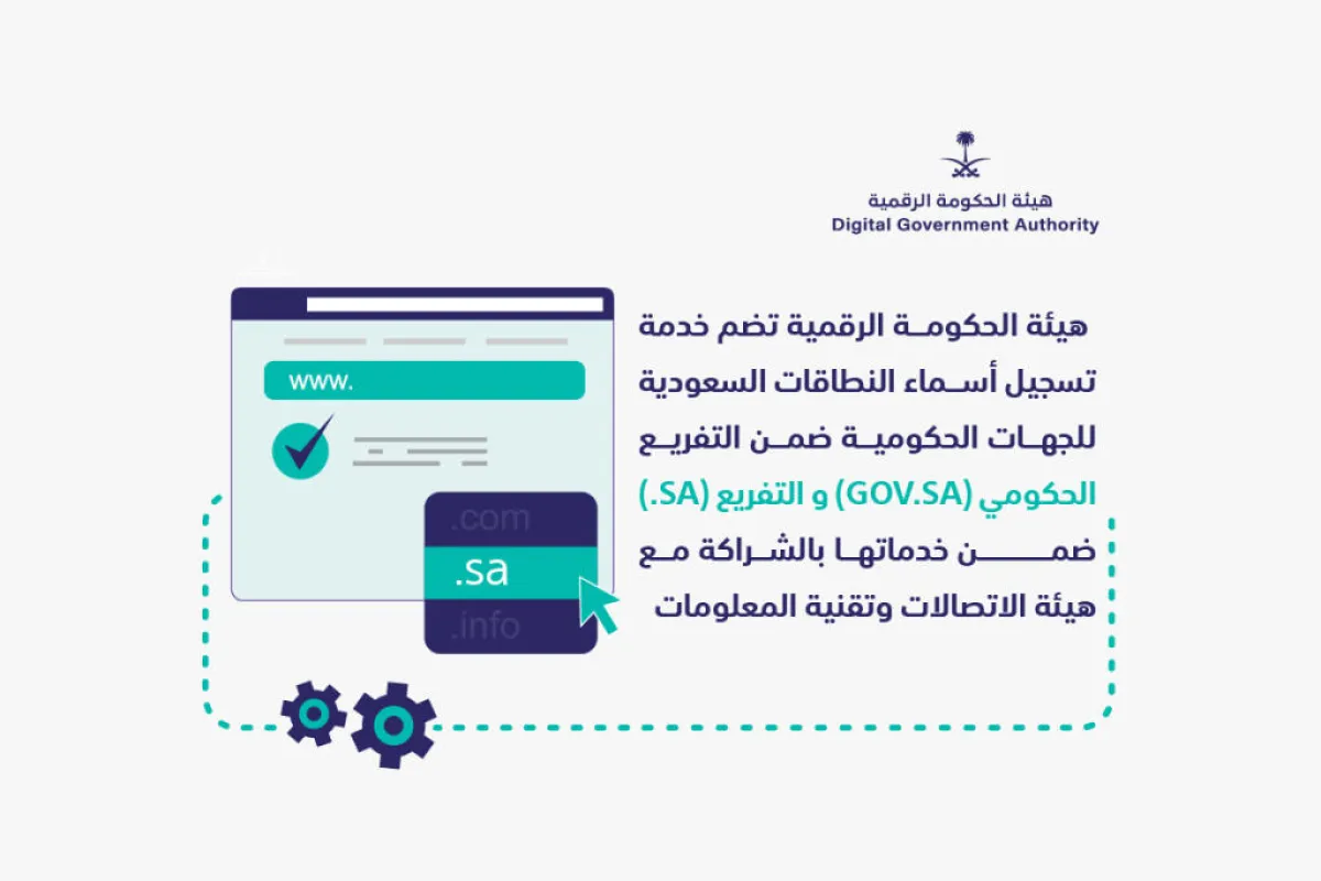 انطلاقاً من كونها الجهة المختصة والمرجع الوطني لكل ما يتعلق بالحكومة الرقمية في السعودية، أعلنت هيئة الحكومة الرقمية إطلاق خدمات تسجيل أسماء النطاقات السعودية للجهات الحكومية ضمن التفريع الحكومي (gov.sa) والتفريع (.sa)، وذلك بالشراكة مع هيئة الاتصالات وتقنية المعلومات كونها الجهة المختصة بتنظيم وتشغيل أسماء النطاقات السعودية، حيث أوكلت هذه المهمة لهيئة الحكومة الرقمية تعزيزاً لدورها في تنظيم أعمال الحكومة الرقمية وتحقيقاً لحوكمة أفضل لخدمات تسجيل أسماء النطاقات الحكومية.