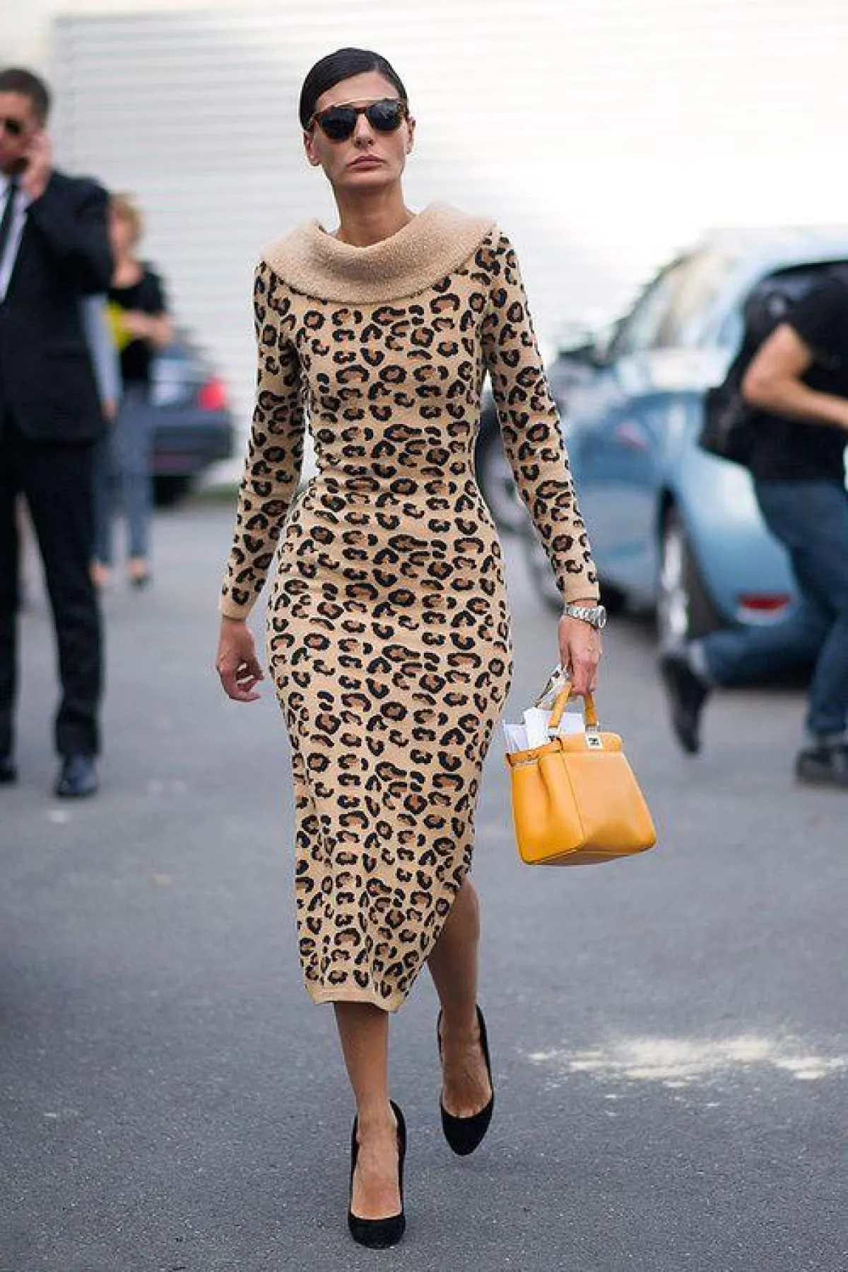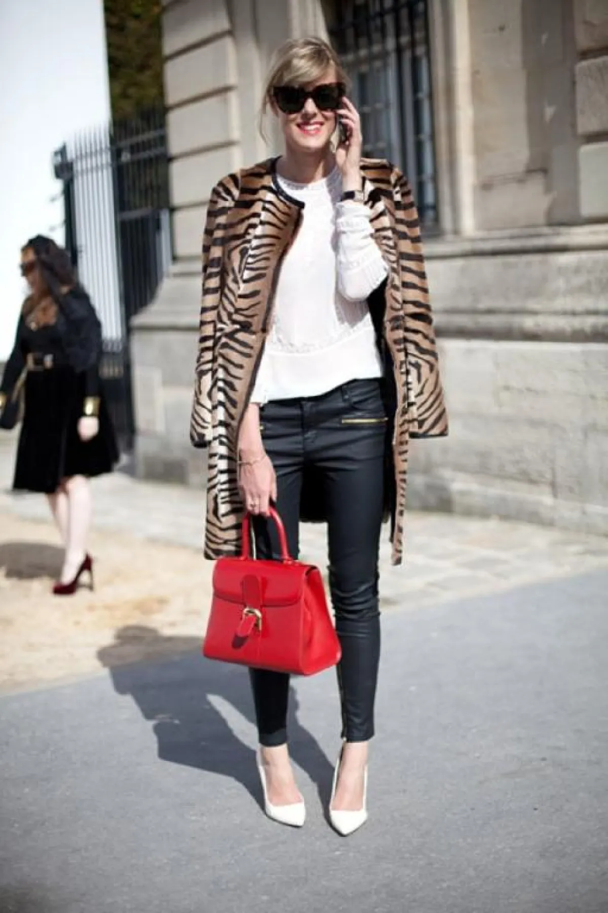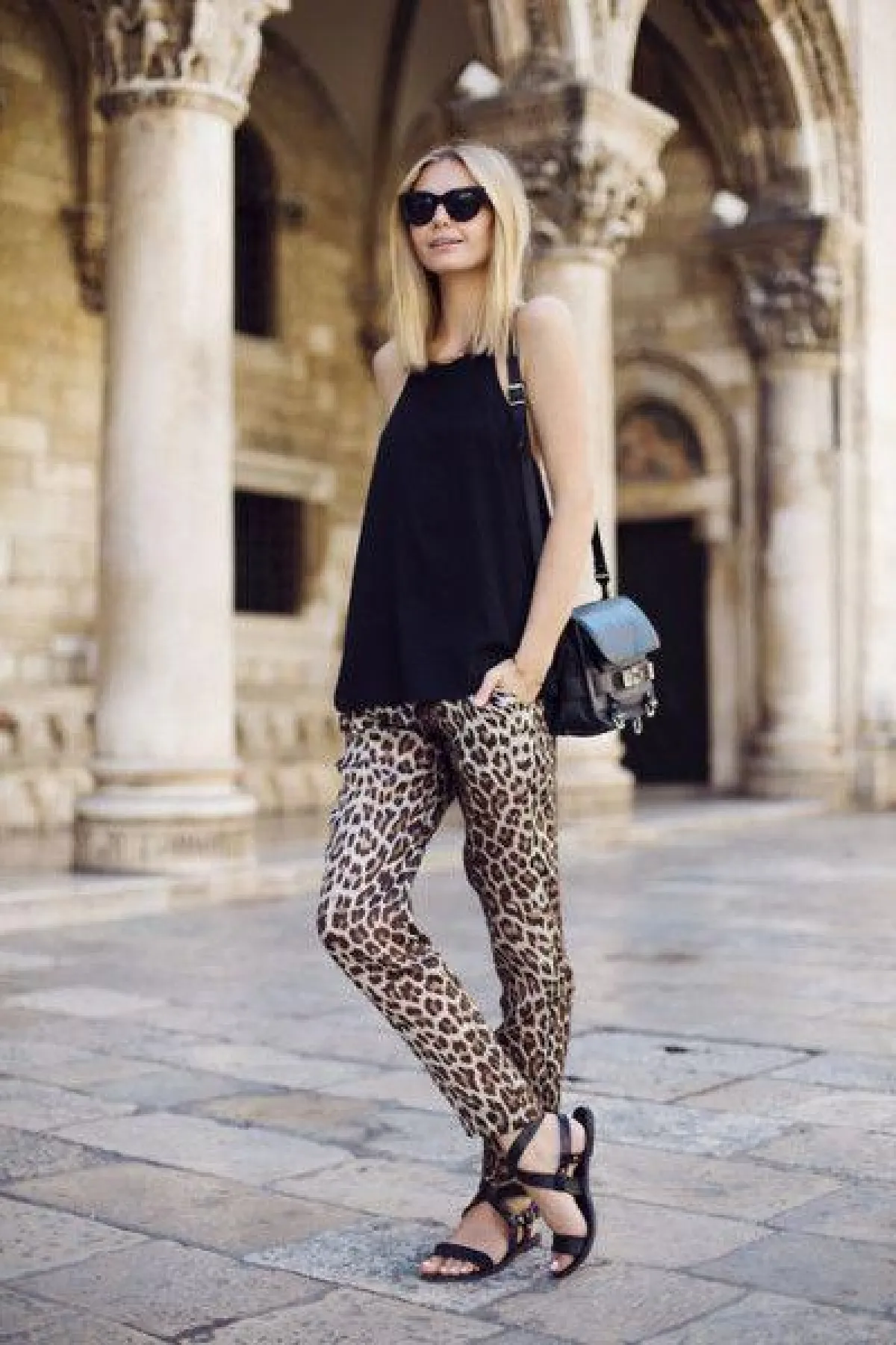 فكري بالحذاء ذي طبعة جلد النمر كحذاء أسود كلاسيكي، إذ نستطيع أن نجزم بأنه يناسب جميع إطلالاتك، وقد بدا هذا الحذاء جميلاً في إطلالة أيقونة الموضة OlivaPalermo ببنطلون مورّد مع جاكيت أسود.