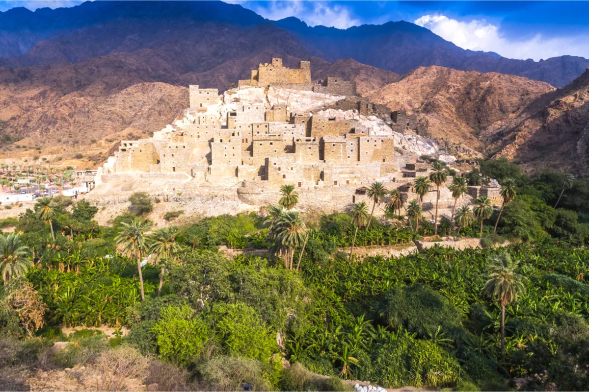 تحتفظ قرية "ذي عين" الأثريّة بمكانتها التاريخية منذ مئات السنين، فقد أولتها هيئة السياحة اهتمامًا بالغًا لتكون أحد روافد السياحة الهامّة بمنطقة الباحة. وتبعد القرية نحو 20 كم. من محافظة المخواة، و24 كم. من الباحة. كانت نشأت في القرن العاشر الهجري، وعمرها يزيد على 400 سنة. القرية مبنيّة بالحجارة، ومسقوفة بأشجار العرعر التي نقلت إليها من الغابات المجاورة، أمّا شرفاتها فمزدانة بأحجار المرو الكوارتز التي تتخذ شكل مثلّثات متراصّة.
