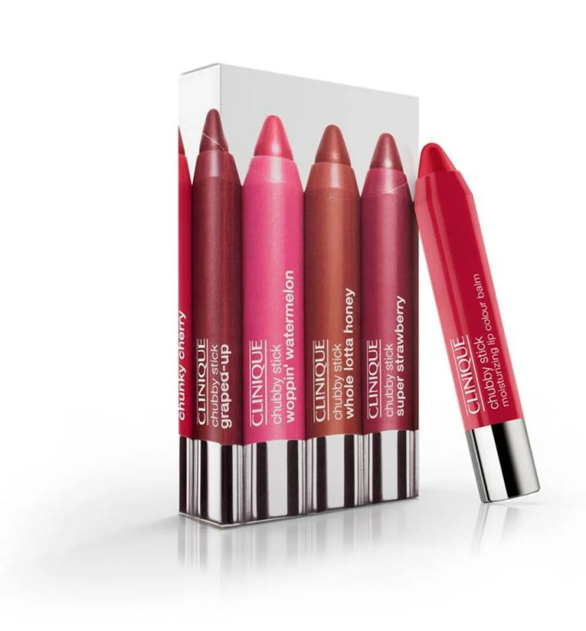 البلسم المرطب والملوّن للشفاه Chubby Stick Moisturizing Lip Colour Balm الذي يحتل المرتبة الأولى بين مستحضرات Clinique من حيث المبيعات، الآن يصبح أكثر تركيزاً وكثافة. لعشاق إصبع Chubby Stick حول العالم، نقدم تركيبة جديدة منه تؤمن تغطية مركزة تجعل الشفاه تبدو ممتلئة وتمنحها لوناً أكثر قوة وتركيزاً. إليكم Chubby Stick Intense Moisturizing Lip Colour Balm. وكما تعلمين هناك أصابع تجميل من Chubby Stick للعيون .