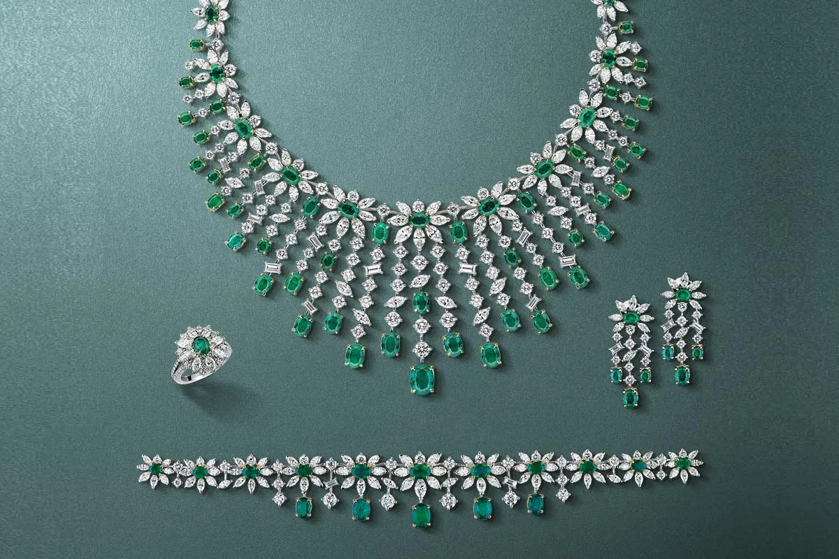 طقم من الألماس والزمرد من دار معوض Mouawad