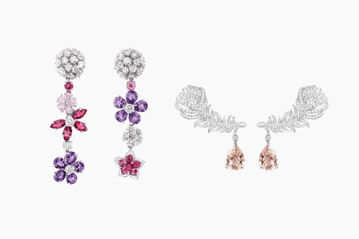 وصُممت موديلات أقراط Folie des Prés المتدلية من الذهب الأبيض عيار ١٨ قيراطاً ومرصعة بألماس الأبيض وجاءت الأحجار الكريمة على شكل زهور مختلفة من السافير الوردي والبنفسجي وقطع الألماس الصغيرة في منتصف الأحجار .