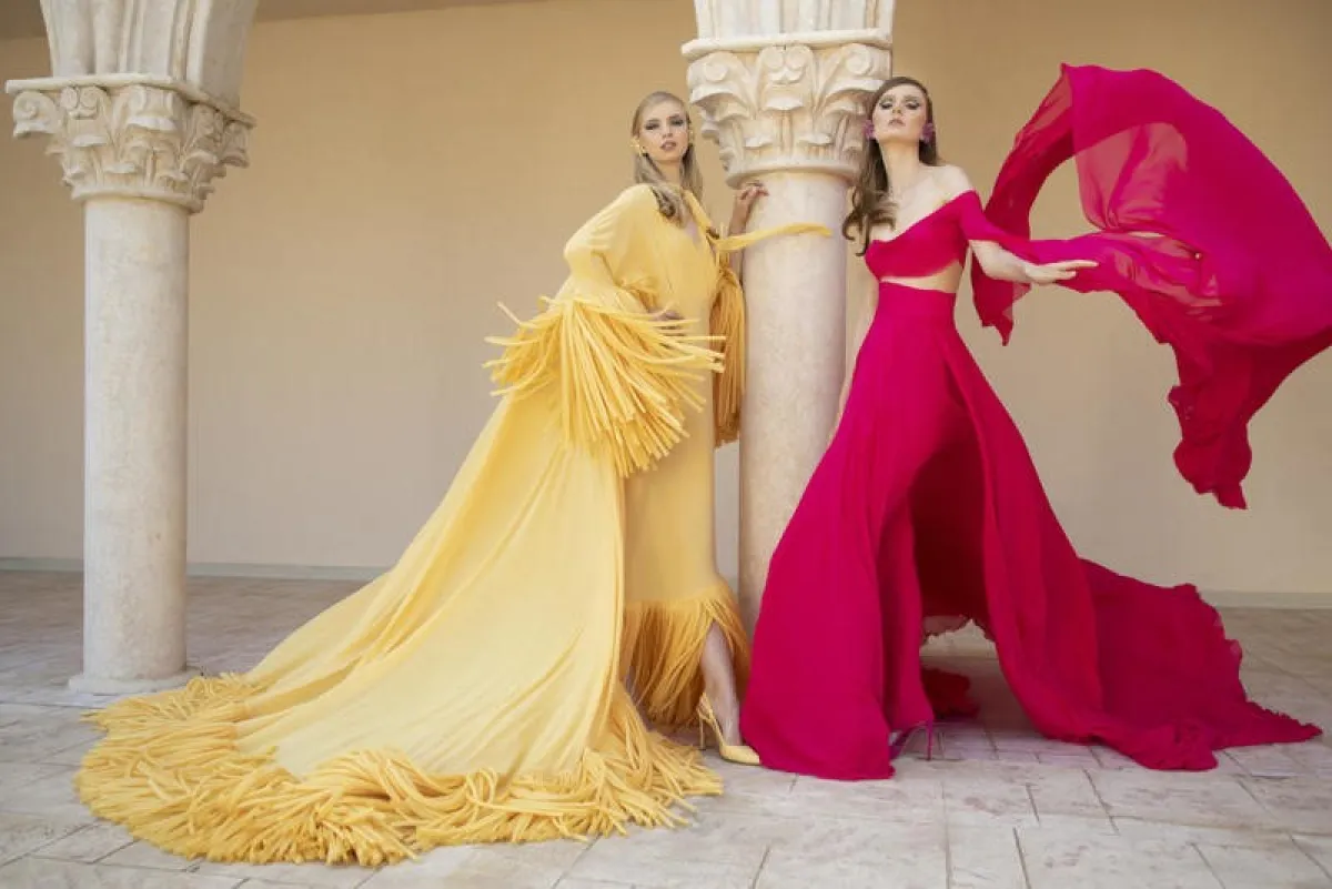 مجموعة من الفساتين التي تراوحت بين القصّات القصيرة والناعمة، والتصاميم الطويلة الفاخرة، اغتنت بمجموعة من الألوان وبأقمشة أنثوية ناعمة من الشيفون والكشكش والريش...