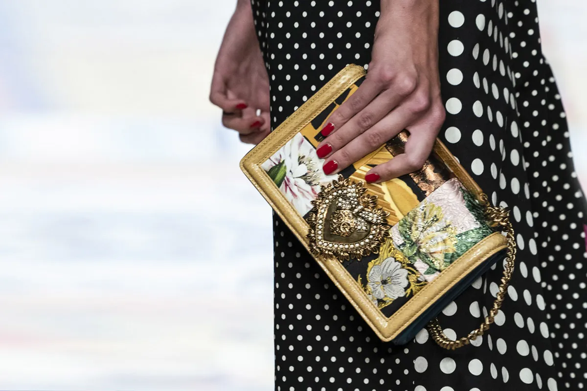 تعشق دار دولتشي أند غابانا Dolce&Gabbana فنّ الطبعات والمزج في ما بينها، وها هي تقدّم مجموعة من شنط الكلاتش المطبّعة برسومات متنوّعة منها الورود التي تناثرت على القطعة بدرجاتها الميتاليكية اللامعة. وعلى الرغم من اللون الذهبي الذي يطغى عليها، فإن هذه الحقيبة تناسب سهراتك كما مشاويرك النهارية إذا كنت جريئة وتبحثين عن إطلالة تجمع التناقضات بأسلوب جذاب.