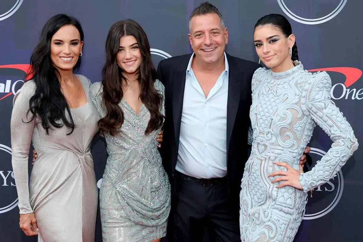 النجمتان تشارلي وديكس دامليو مع العائلة تألقتا بفستانين رماديين قصيرين من دار بالمان خلال حفل جوائز ESPY AWARDS