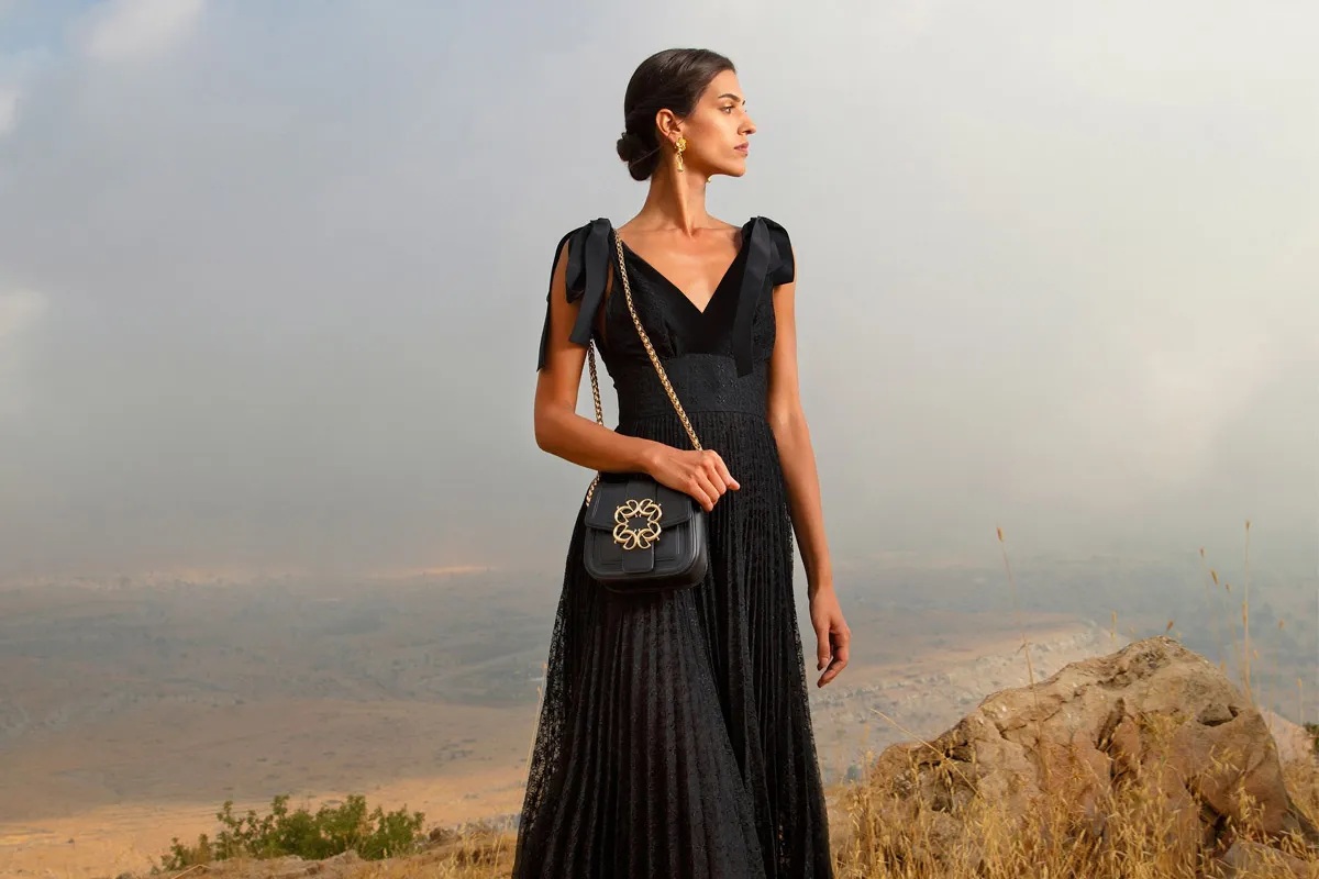 لإطلالة عصرية جذابة، يُمكنكِ الاستعانة بهذا التصميم لفستان أسود دانتيل من فرانشيسكا ليبراتوري Francesca Liberatore، يتميّز بتصميمه الناعم والبسيط الذي لا يخلو في الوقت نفسه من لمسة الفخامة. يناسب السهرات ودعوات العشاء ويمكنك تنسيقه مع إكسسوارات ذهبية لمزيد من الإشراق.