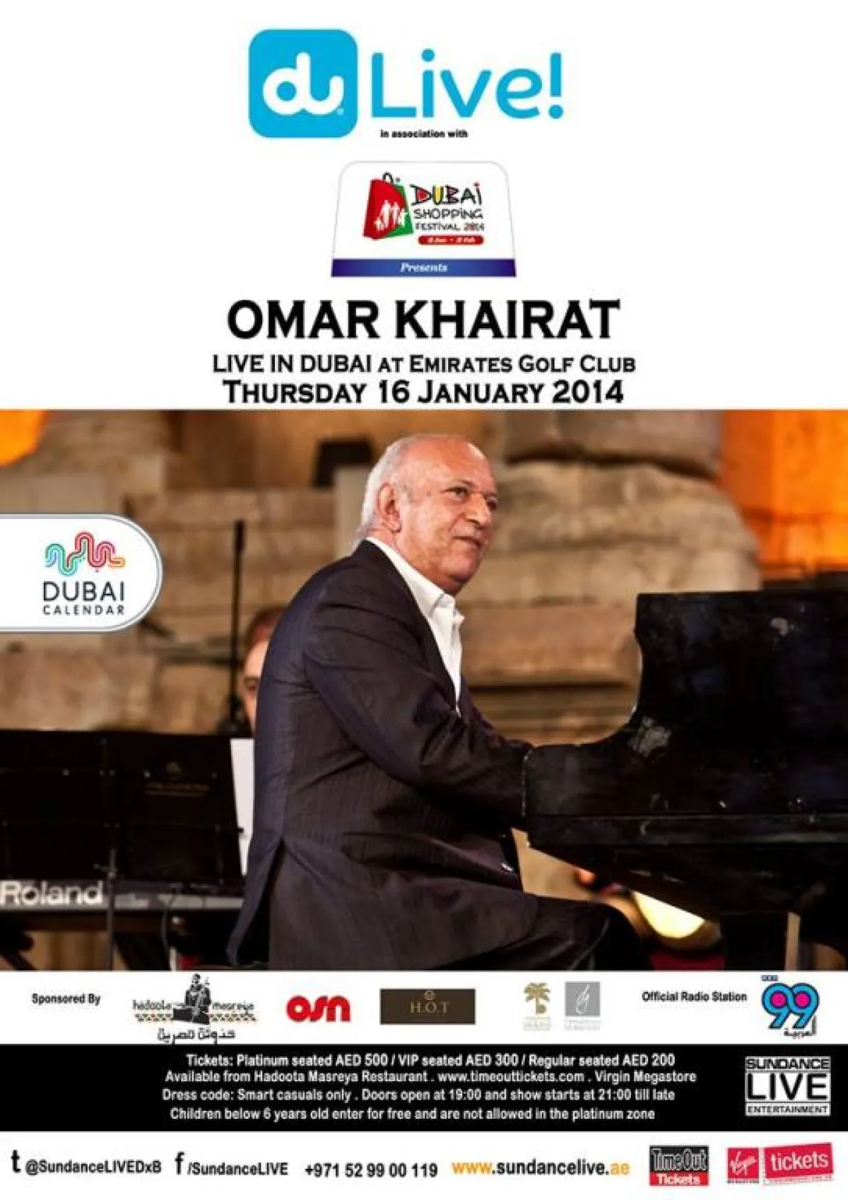 - يحيي الموسيقار عمر خيرت حفلاً اليوم في نادي الإمارات للجولف في دبي تفتح الأبواب في تمام الساعة الخامسة ويبدأ الحفل في تمام الساعة الثامنة مساء.
