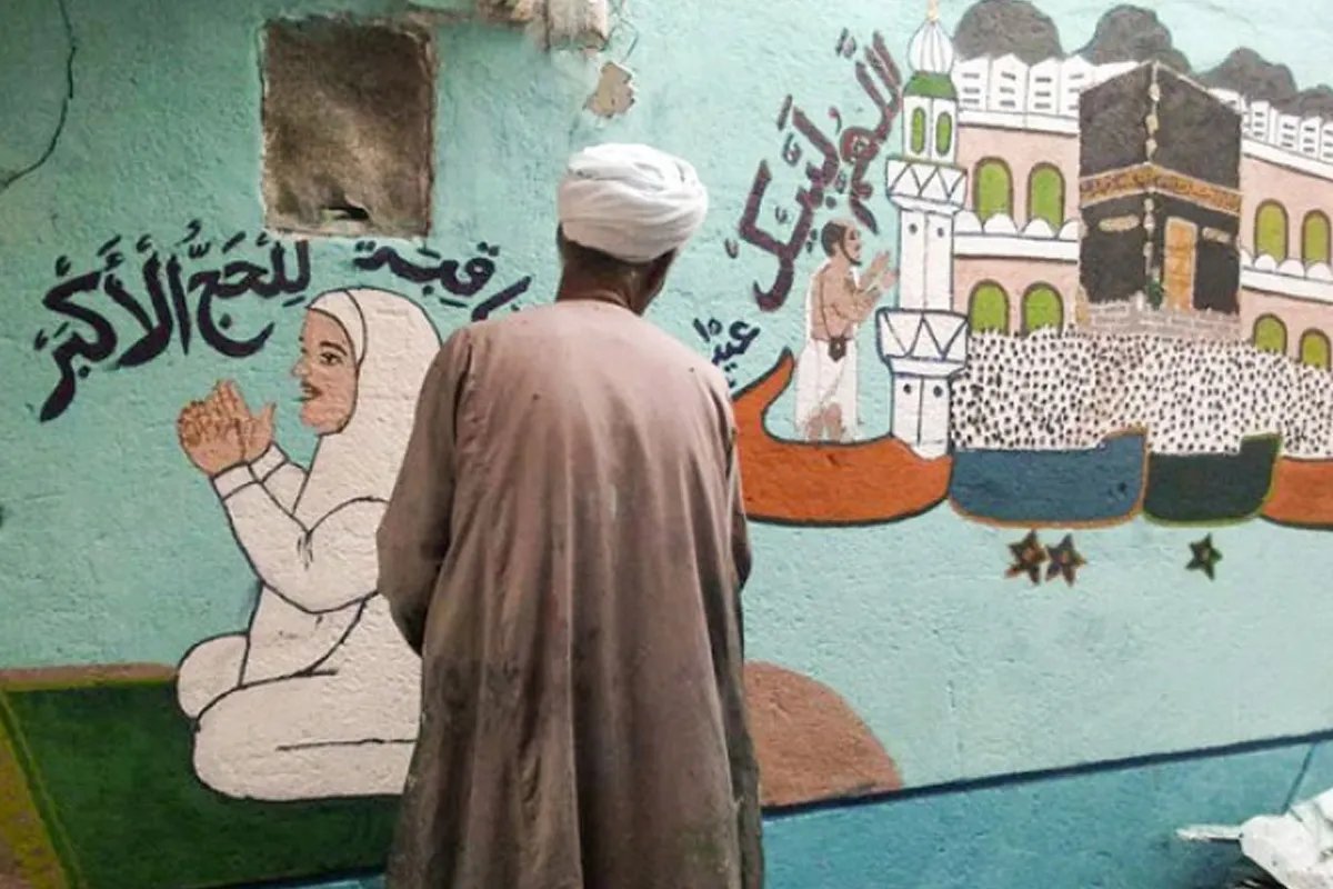ما إن يهل موسم الحج، حتى ينتعش موسم فناني الحج في قرى وصعيد مصر، وكثير من أحيائها القديمة والشعبية، فيما يعرف بجرافيتي الحج، حيث يظهر كثير من التجارب الفنية الفريدة، والتيارات الإبداعية النافرة، والتي تشق عباب جدران المباني، وتقتحم حوائط المنازل، لتتزاحم بدون ترتيب، وتتشابك دون قواعد فنية، ومعضلات أكاديمية تشكيلية، فترصد الرحلة المقدسة بأدق تفاصيلها، بدءاً من خروج الحاج من منزله ووداع أهله وجيرانه، وحتى وصوله لأداء المناسك، وعند عودته سالماً غانماً مقبولاً حجه مغفوراً ذنبه مرة أخرى. وتفاصيل استقبال المهنئين والمباركين...